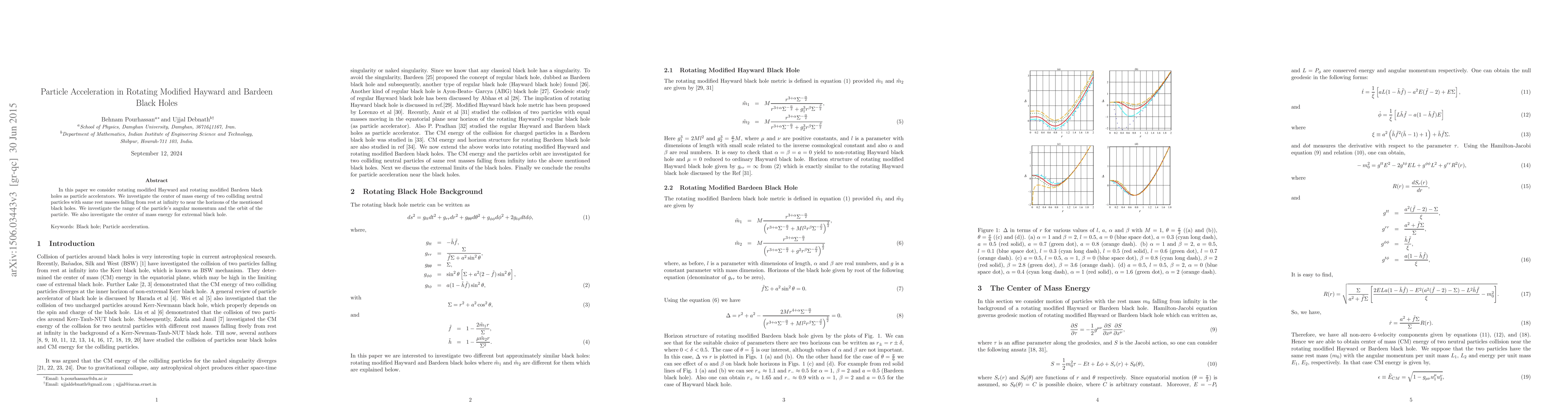 This paper examines the potential for particle acceleration in rotating modified Hayward and Bardeen black holes, focusing on the center of mass energy of colliding neutral particles falling towards the black holes' horizons. It analyzes the effects of particle angular momentum and orbits, and also considers the scenario for extremal black holes.