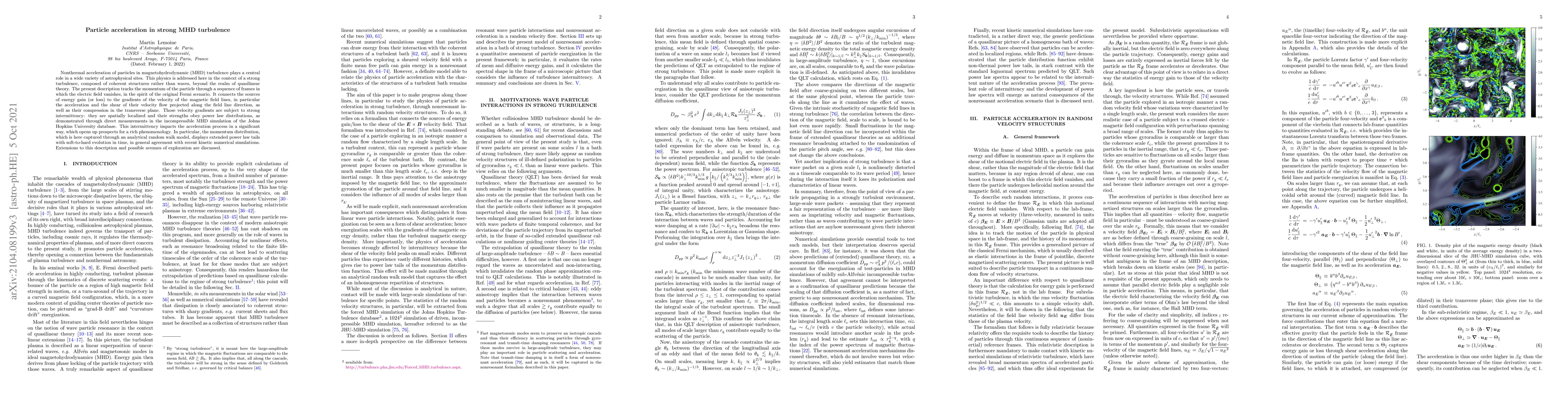 This paper investigates particle acceleration in strong magnetohydrodynamic (MHD) turbulence, focusing on coherent structures beyond quasilinear theory. It reveals that intermittency in velocity gradients of magnetic field lines significantly influences the acceleration process, leading to extended power law tails in momentum distribution.