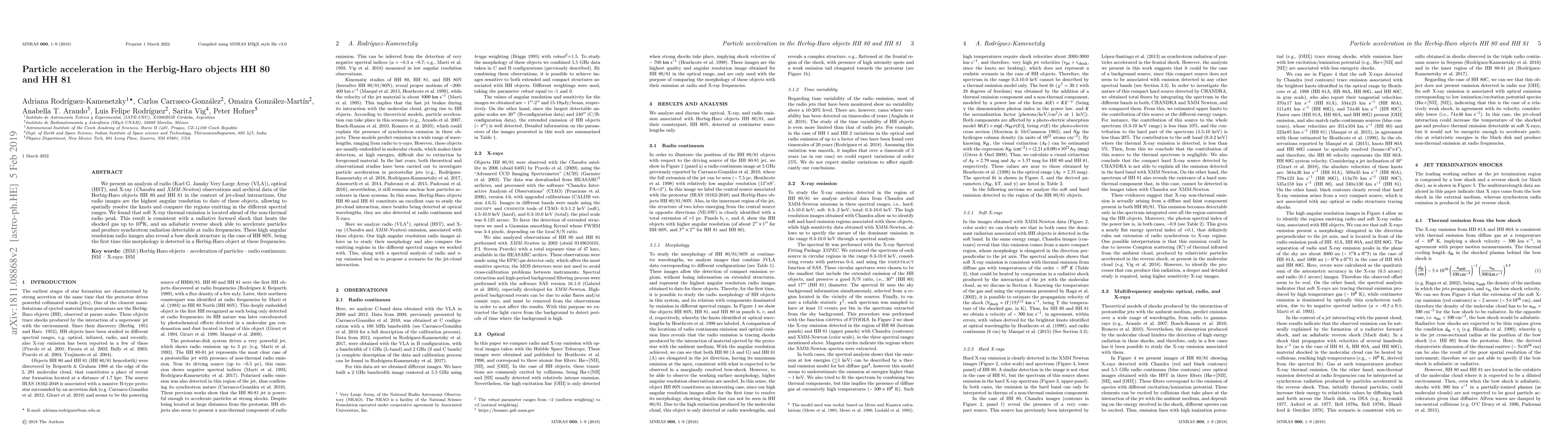 This study uses high-resolution radio, optical, and X-ray observations to analyze Herbig-Haro objects HH 80 and HH 81, revealing a radiative forward shock and an adiabatic reverse shock that accelerates particles, producing synchrotron radiation detectable at radio frequencies. A bow shock structure is identified in HH 80N for the first time at these frequencies.