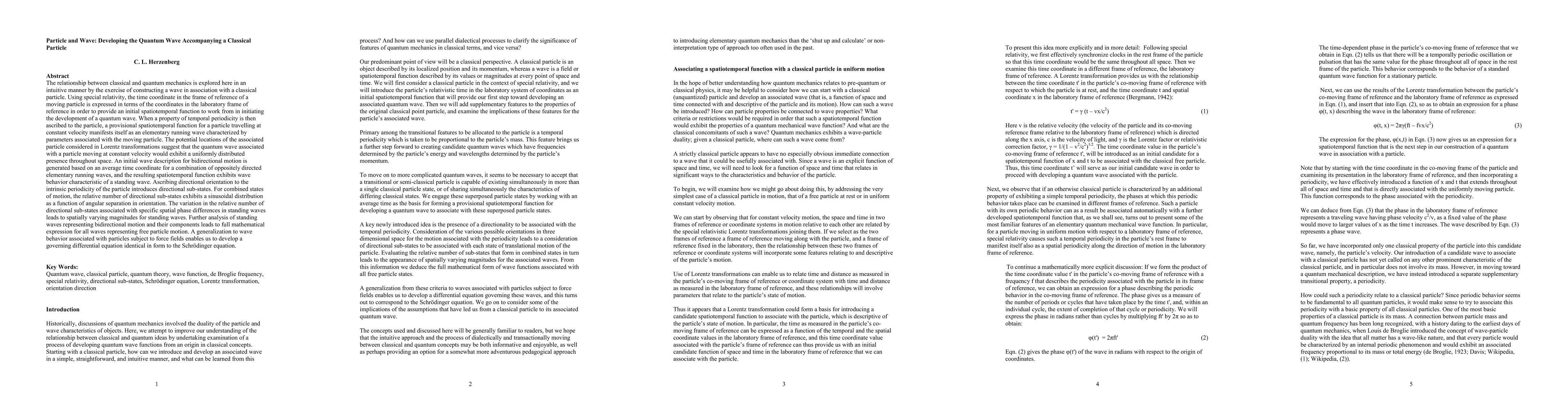The relationship between classical and quantum mechanics is explored in an intuitive manner by the exercise of constructing a wave in association with a classical particle. Using special relativity, the time coordinate in the frame of reference of a moving particle is expressed in terms of the coordinates in the laboratory frame of reference in order to provide an initial spatiotemporal function to work from in initiating the development of a quantum wave. When temporal periodicity is ascribed to the particle, a provisional spatiotemporal function for a particle travelling at constant velocity manifests itself as an running wave characterized by parameters associated with the moving particle. A wave description for bidirectional motion is generated based on an average time coordinate for a combination of oppositely directed elementary running waves, and the resulting spatiotemporal function exhibits wave behavior characteristic of a standing wave. Ascribing directional orientation to the intrinsic periodicity of the particle introduces directional sub-states; variations in the relative number of sub-states as a function of angle in combined states lead to spatially varying magnitudes for the associated waves. Further analysis leads to full mathematical expression for all waves representing free particle motion. A generalization for particles subject to force fields enables us to develop a governing differential equation identical in form to the Schroedinger equation.
