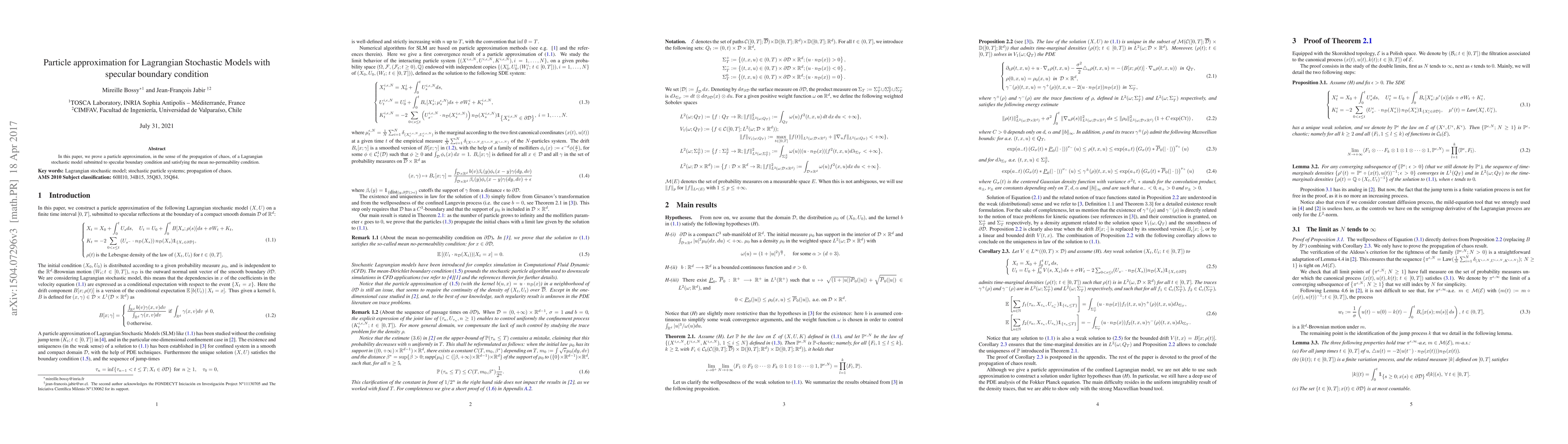 A new particle approximation is proven for Lagrangian stochastic models with specular boundary conditions, revealing a connection to the propagation of chaos. This discovery provides insights into the behavior of these complex systems.
