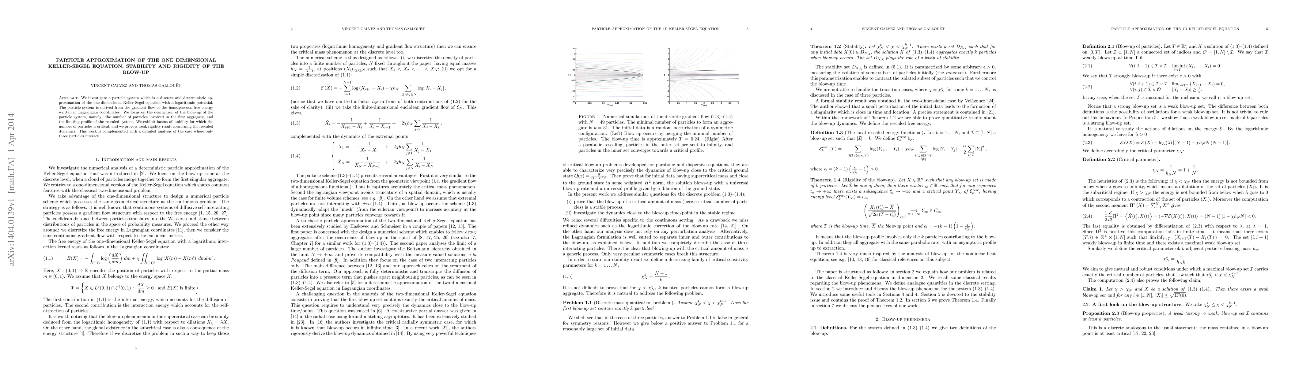 We investigate a particle system which is a discrete and deterministic approximation of the one-dimensional Keller-Segel equation with a logarithmic potential. The particle system is derived from the gradient flow of the homogeneous free energy written in Lagrangian coordinates. We focus on the description of the blow-up of the particle system, namely: the number of particles involved in the first aggregate, and the limiting profile of the rescaled system. We exhibit basins of stability for which the number of particles is critical, and we prove a weak rigidity result concerning the rescaled dynamics. This work is complemented with a detailed analysis of the case where only three particles interact.