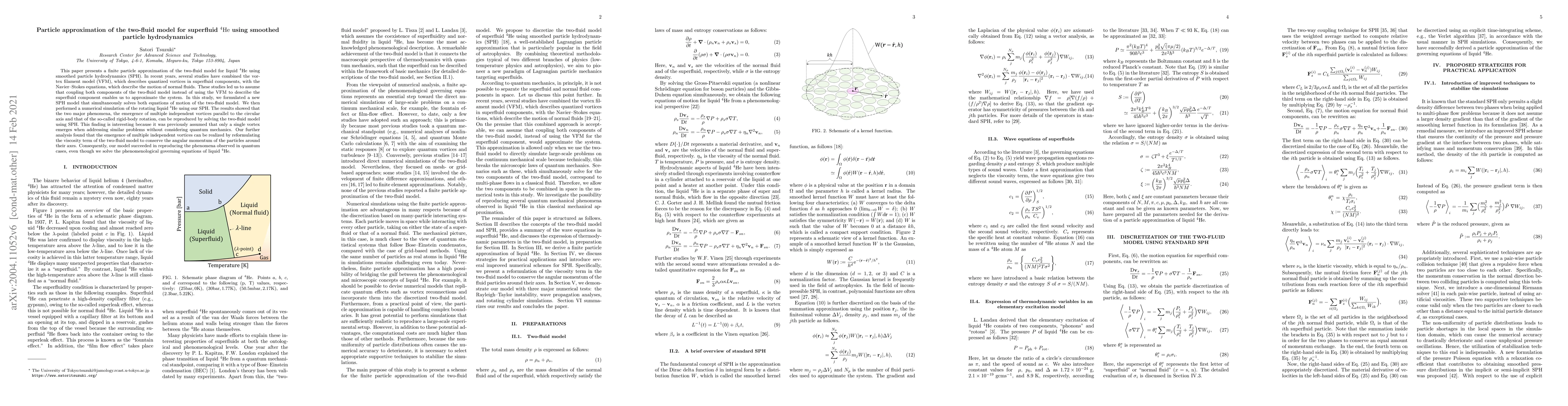 This paper introduces a smoothed particle hydrodynamics (SPH) model to approximate the two-fluid model for superfluid $^4$He, successfully reproducing phenomena like multiple independent vortices and rigid-body rotation, challenging previous assumptions of single vortex emergence. The model reformulates viscosity to conserve angular momentum, achieving quantum-like behavior through phenomenological equations.