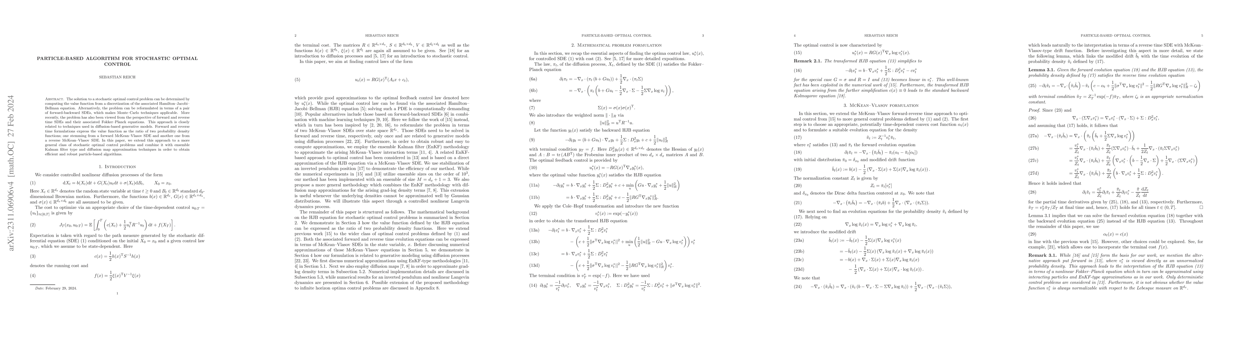 This paper proposes a particle-based algorithm for solving stochastic optimal control problems by reformulating them using forward and reverse time stochastic differential equations and Fokker-Planck equations, combining these with ensemble Kalman filter and diffusion map techniques for efficiency and robustness.