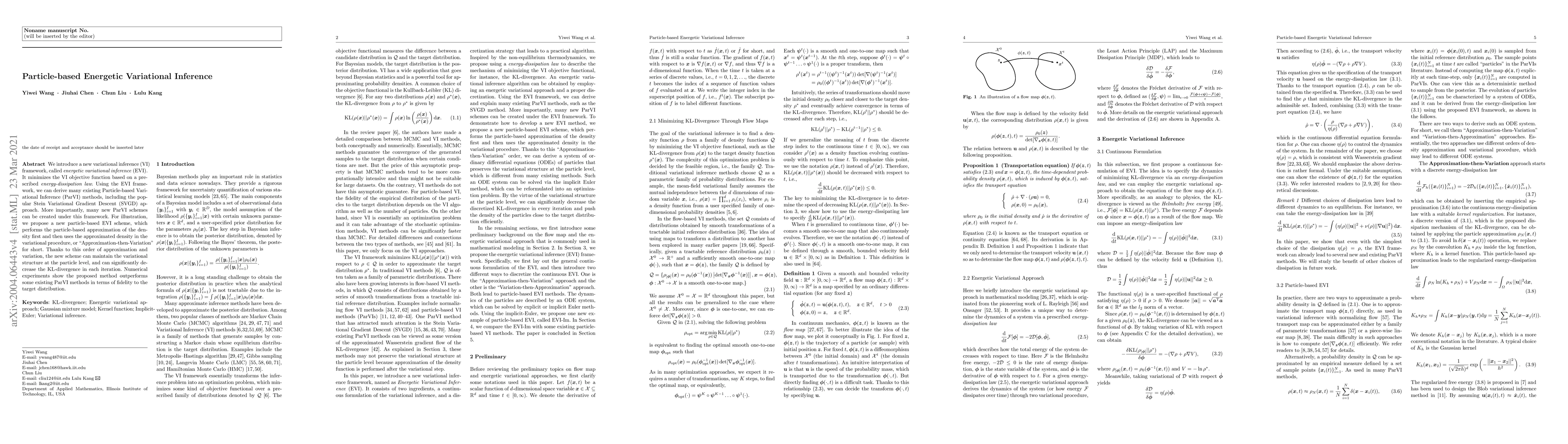 This paper introduces energetic variational inference (EVI), a new framework for variational inference that minimizes the VI objective based on an energy-dissipation law. It proposes a novel "Approximation-then-Variation" particle-based EVI scheme that outperforms existing methods by reducing KL-divergence and maintaining variational structure.
