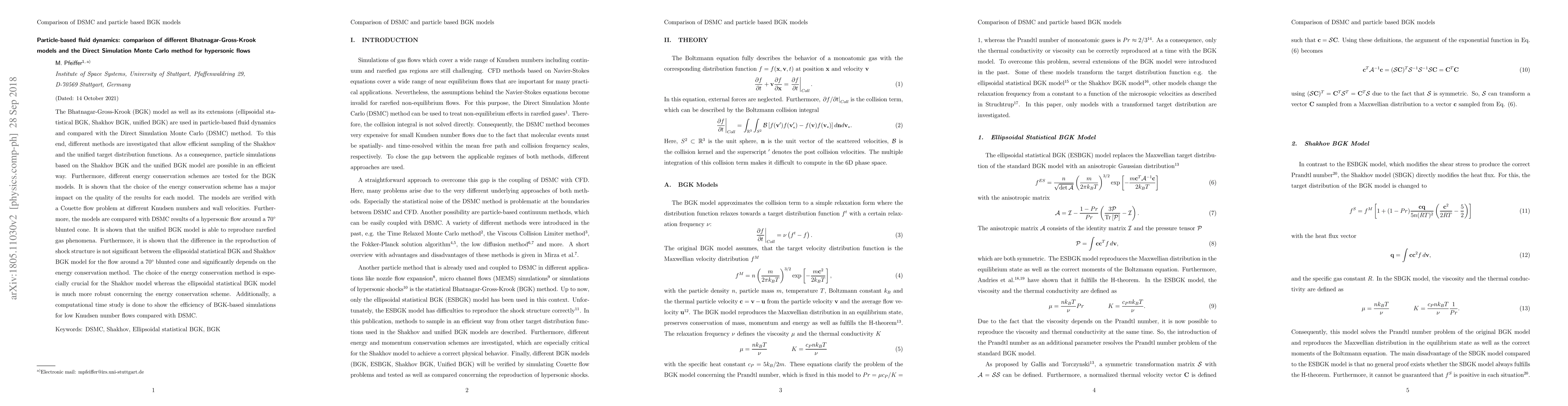 This paper compares various Bhatnagar-Gross-Krook (BGK) models with Direct Simulation Monte Carlo (DSMC) for hypersonic flows, focusing on efficient sampling methods and energy conservation schemes. The unified BGK model effectively reproduces rarefied gas phenomena, while the choice of energy conservation method significantly impacts results, with the Shakhov model being particularly sensitive.