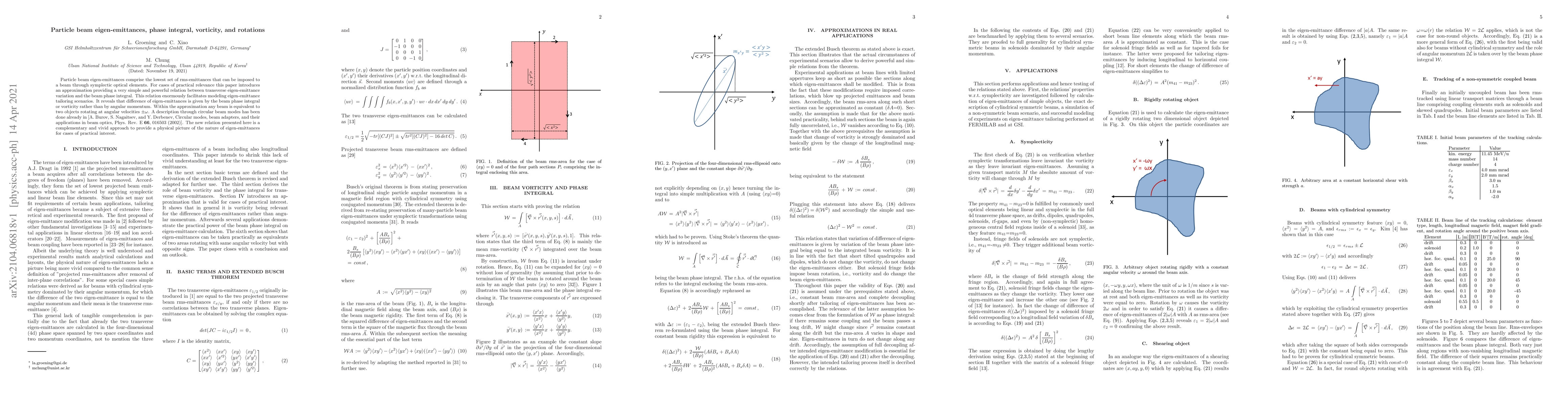 Particle beam eigen-emittances comprise the lowest set of rms-emittances that can be imposed to a beam through symplectic optical elements. For cases of practical relevance this paper introduces an approximation providing a very simple and powerful relation between transverse eigen-emittance variation and the beam phase integral. This relation enormously facilitates modeling eigen-emittance tailoring scenarios. It reveals that difference of eigen-emittances is given by the beam phase integral or vorticity rather than by angular momentum. Within the approximation any beam is equivalent to two objects rotating at angular velocities of same strength and different sign. A description through circular beam modes has been done already in [A. Burov, S. Nagaitsev, and Y. Derbenev, Circular modes, beam adapters, and their applications in beam optics, Phys. Rev. E 66, 016503 (2002)]. The new relation presented here is a complementary and vivid approach to provide a physical picture of the nature of eigen-emittances for cases of practical interest.