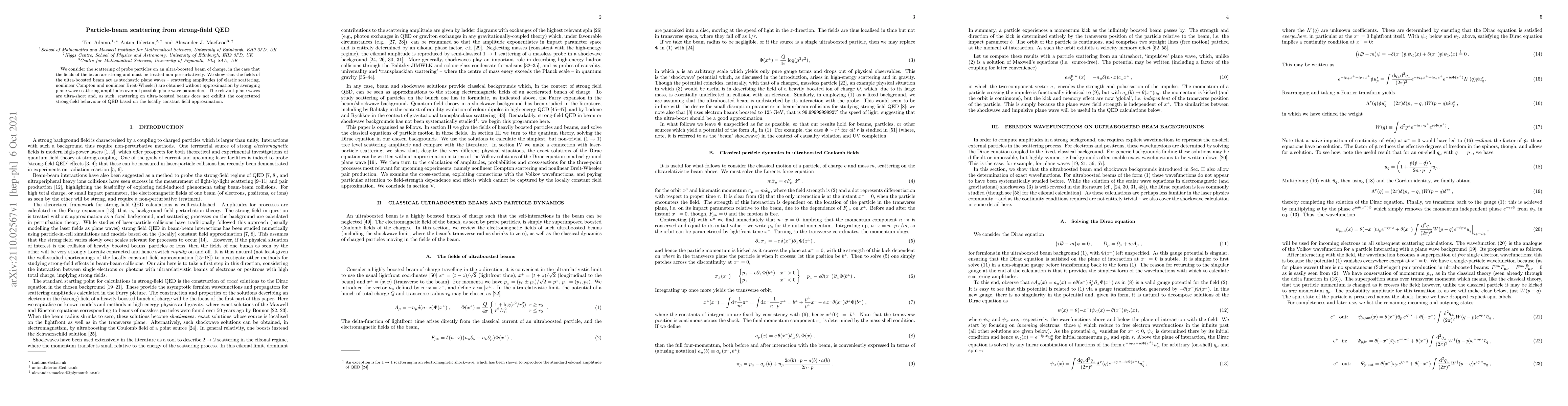 This research explores the scattering of probe particles by an ultra-boosted beam of charge under strong, non-perturbative fields. It reveals that the beam's fields act as stochastic plane waves, enabling the calculation of scattering amplitudes through averaging over plane wave parameters, disproving the locally constant field approximation's strong-field QED behavior.