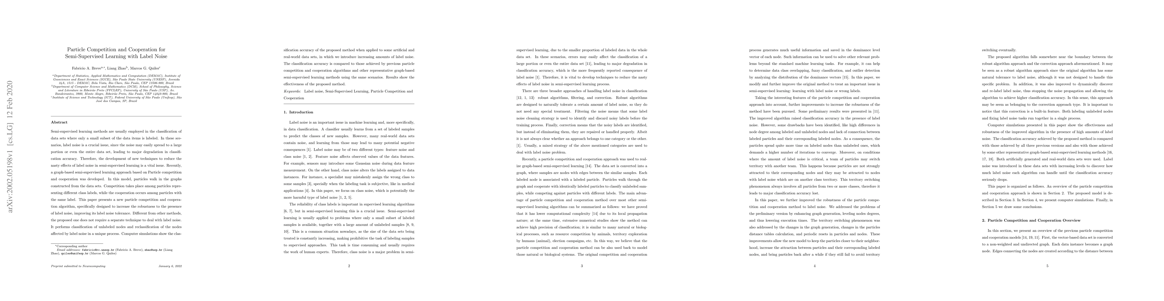 This paper introduces a novel particle competition and cooperation algorithm for semi-supervised learning that enhances robustness to label noise without requiring separate noise-handling techniques. The method integrates classification and reclassification of noisy nodes within a single process, demonstrating improved accuracy on both artificial and real-world datasets with varying levels of label noise.