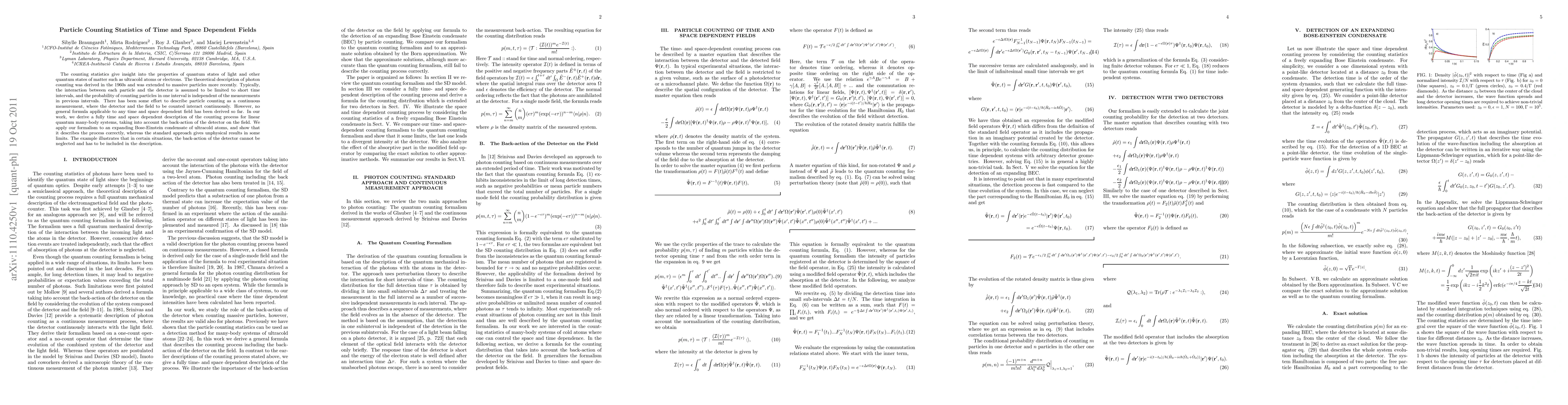The counting statistics give insight into the properties of quantum states of light and other quantum states of matter such as ultracold atoms or electrons. The theoretical description of photon counting was derived in the 1960s and was extended to massive particles more recently. Typically, the interaction between each particle and the detector is assumed to be limited to short time intervals, and the probability of counting particles in one interval is independent of the measurements in previous intervals. There has been some effort to describe particle counting as a continuous measurement, where the detector and the field to be counted interact continuously. However, no general formula applicable to any time and space dependent field has been derived so far. In our work, we derive a fully time and space dependent description of the counting process for linear quantum many-body systems, taking into account the back-action of the detector on the field. We apply our formalism to an expanding Bose-Einstein condensate of ultracold atoms, and show that it describes the process correctly, whereas the standard approach gives unphysical results in some limits. The example illustrates that in certain situations, the back-action of the detector cannot be neglected and has to be included in the description.