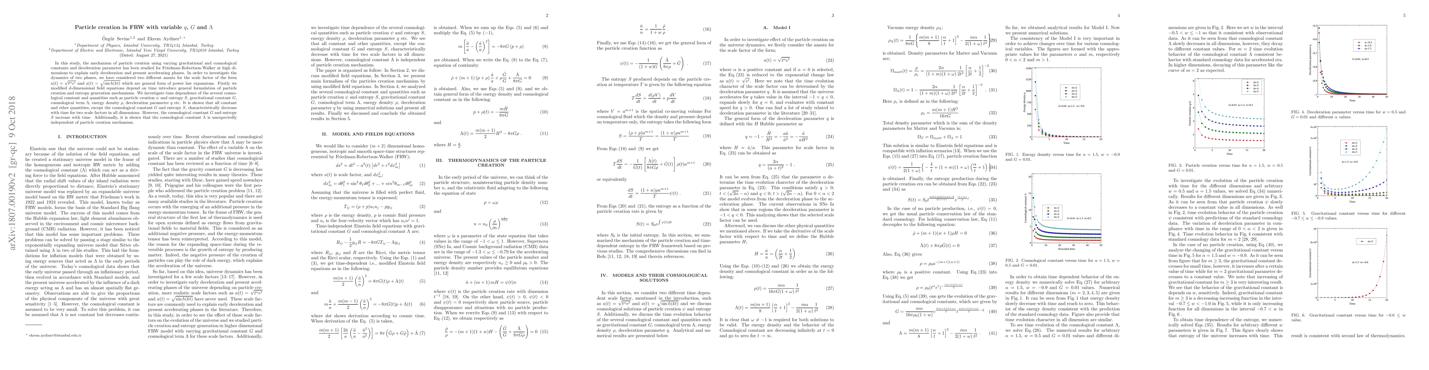 This study investigates particle creation in a Friedmann-Robertson-Walker universe with variable gravitational and cosmological constants, exploring its relation to early deceleration and accelerating phases.