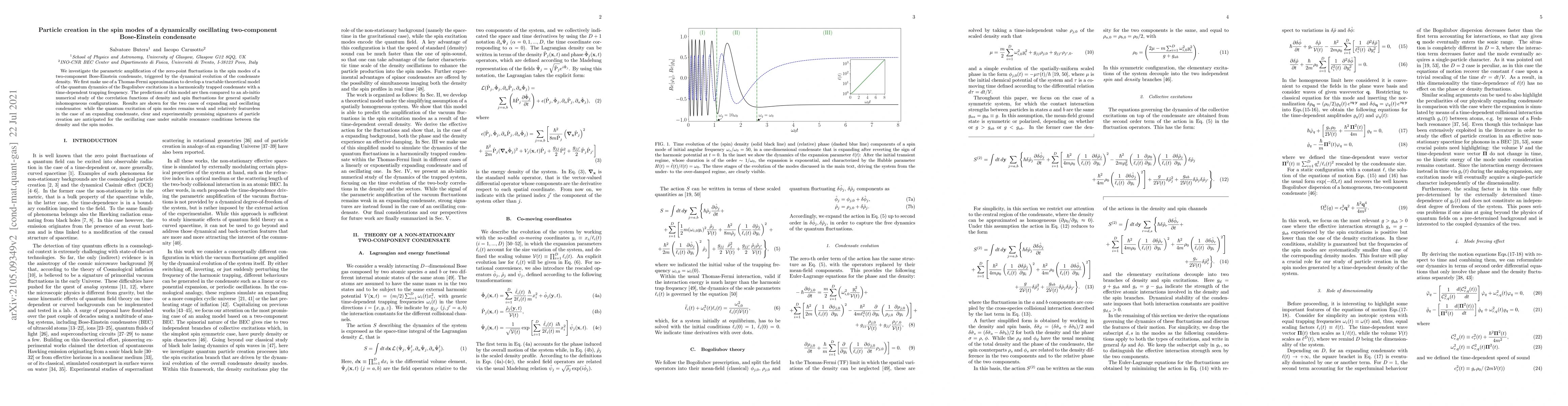 This paper explores the parametric amplification of zero-point fluctuations in spin modes of a two-component Bose-Einstein condensate driven by dynamic density changes. Theoretical models using Thomas-Fermi approximation and numerical simulations reveal weak excitation in expanding condensates but significant particle creation in oscillating ones under resonance conditions.