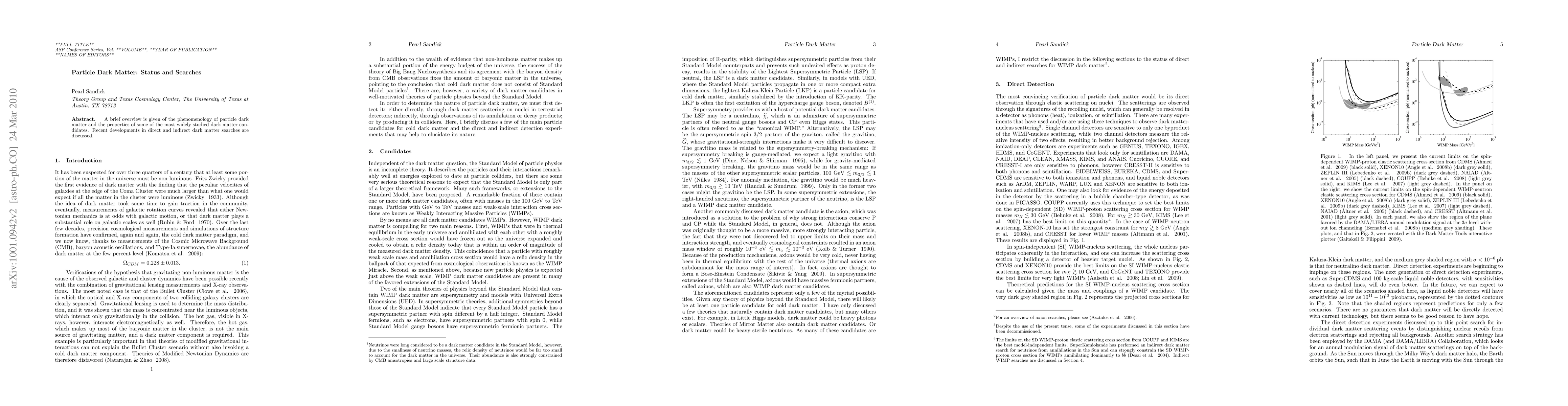 Summary: This paper provides an overview of particle dark matter phenomenology and explores properties of leading dark matter candidates, alongside recent advancements in both direct and indirect detection methods.