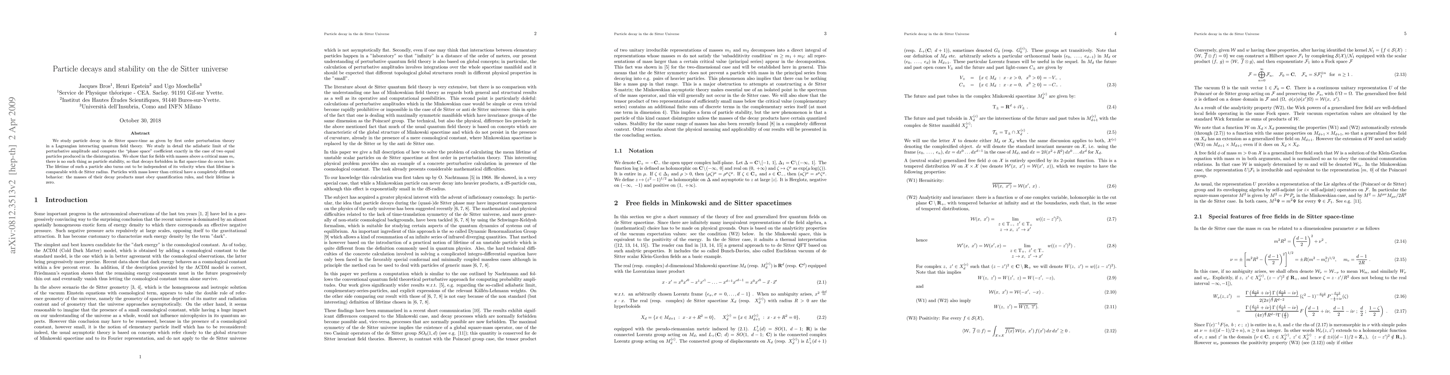 Particle decay in de Sitter space-time reveals that particles with masses above a critical mass become unstable and have no lifetime, while those below the threshold obey quantification rules and decay immediately.