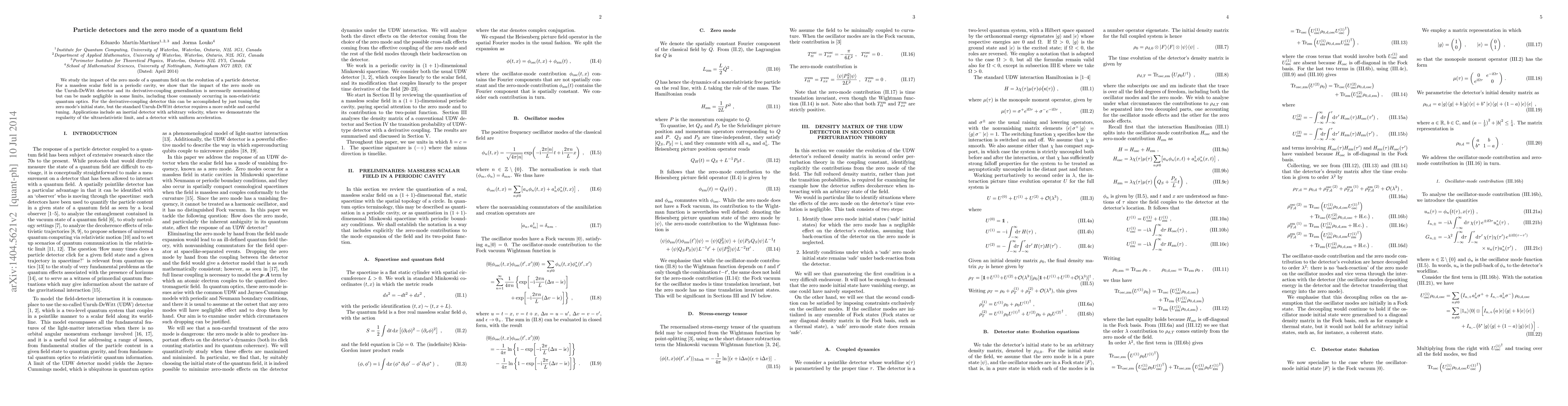 We study the impact of the zero-mode of a quantum field on the evolution of a particle detector. For a massless scalar field in a periodic cavity, we show that the impact of the zero mode on the Unruh-DeWitt detector and its derivative-coupling generalisation is necessarily nonvanishing but can be made negligible in some limits, including those commonly occurring in non-relativistic quantum optics. For the derivative-coupling detector this can be accomplished by just tuning the zero mode's initial state, but the standard Unruh-DeWitt detector requires a more subtle and careful tuning. Applications include an inertial detector with arbitrary velocity, where we demonstrate the regularity of the ultrarelativistic limit, and a detector with uniform acceleration.