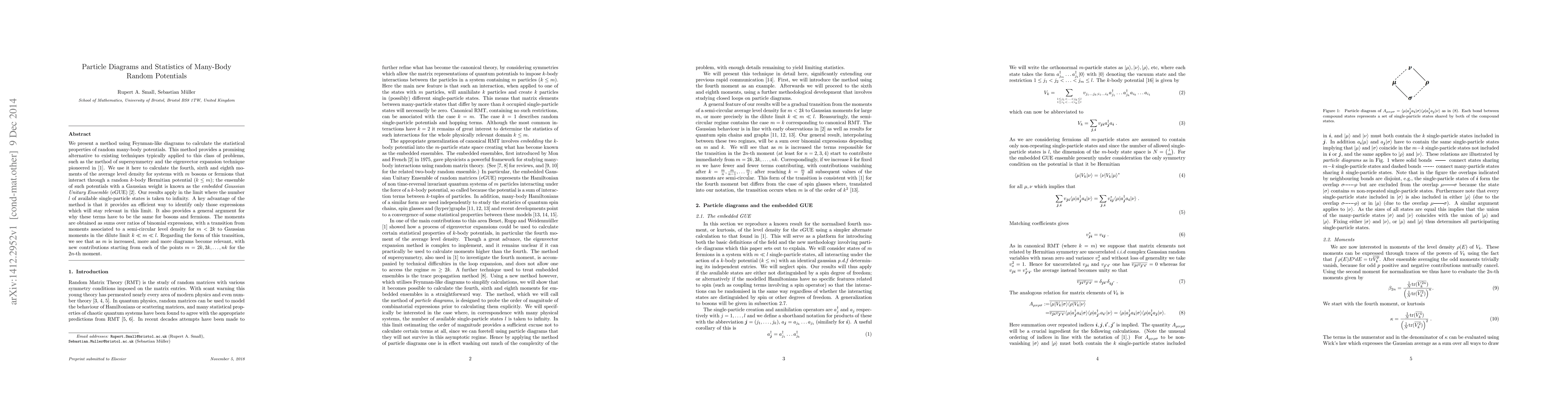 Researchers developed a new method to calculate statistical properties of random many-body potentials using Feynman-like diagrams, providing an alternative to existing techniques and revealing key differences between bosons and fermions.