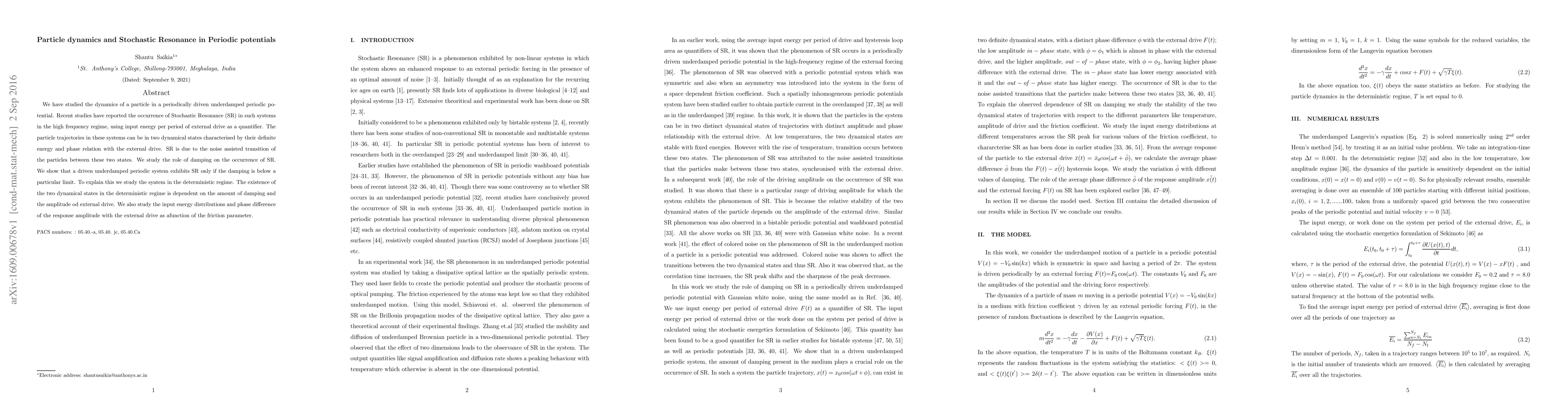This paper investigates the dynamics of a particle in a periodically driven underdamped potential, focusing on Stochastic Resonance (SR) in the high frequency regime. It finds that SR occurs only when damping is below a certain threshold, and explores the relationship between damping, the amplitude of the external drive, and the system's deterministic states.