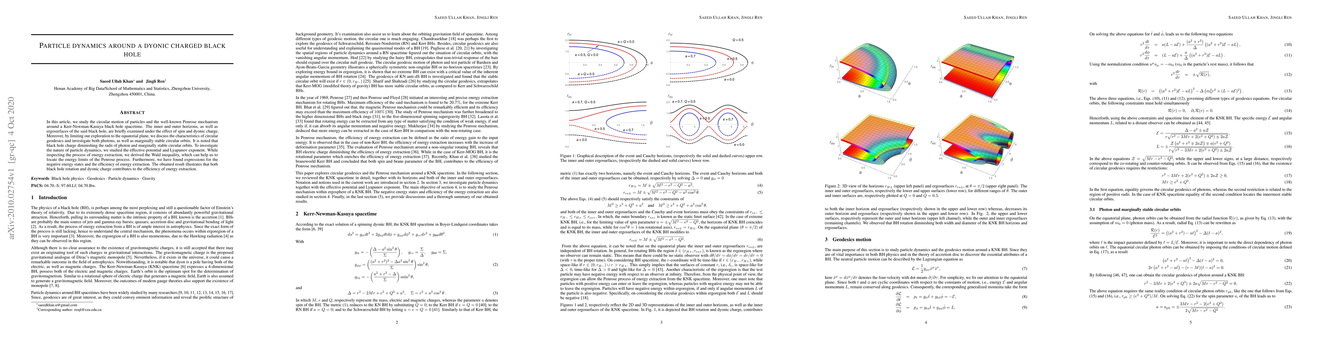 Research explores particle dynamics around a spinning black hole with both charge and spin, revealing that both contribute to energy extraction efficiency. Key findings include expressions for negative energy states and improved understanding of the Penrose process.