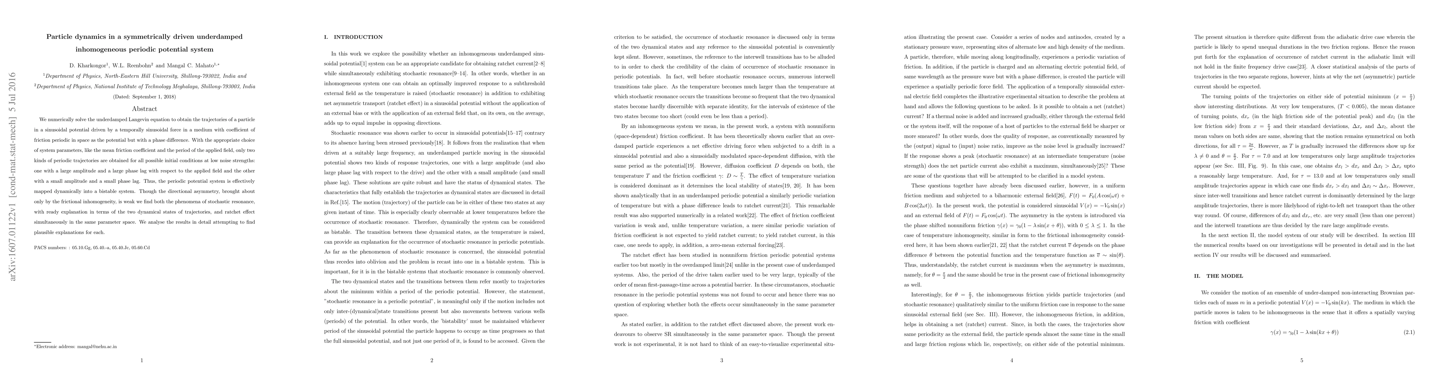 This paper numerically investigates particle dynamics in a driven underdamped system with a spatially periodic friction coefficient and sinusoidal potential, revealing two distinct periodic trajectories. It demonstrates stochastic resonance and the ratchet effect within the same parameter space, mapping the system into a bistable dynamic state.