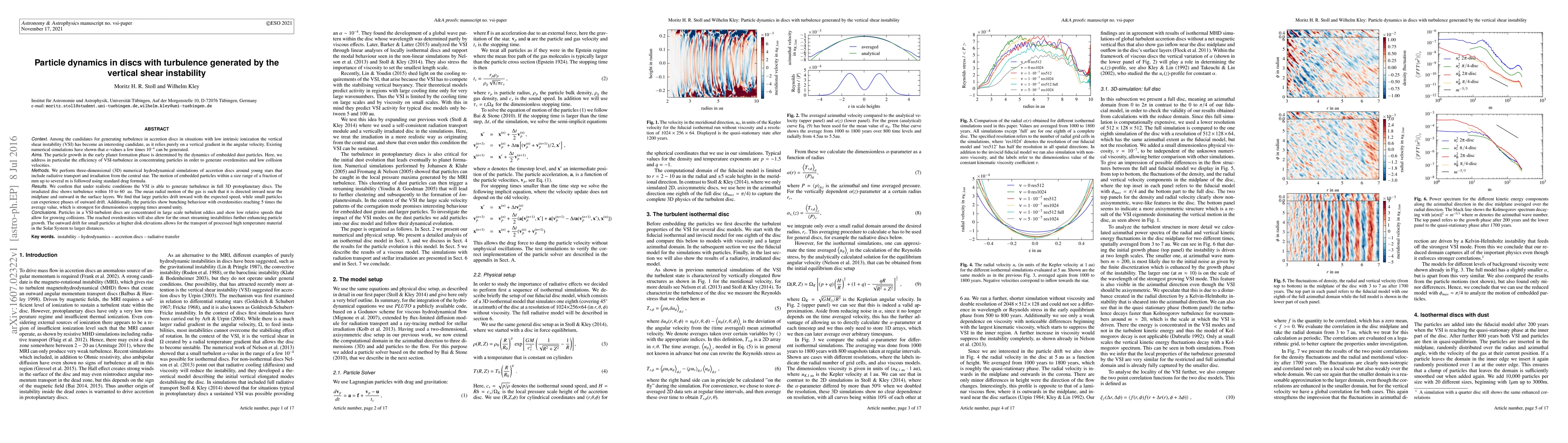 Researchers simulate turbulence in accretion discs using vertical shear instability (VSI), finding that it can concentrate particles and generate overdensities, leading to the potential for streaming instabilities and enhanced particle growth.