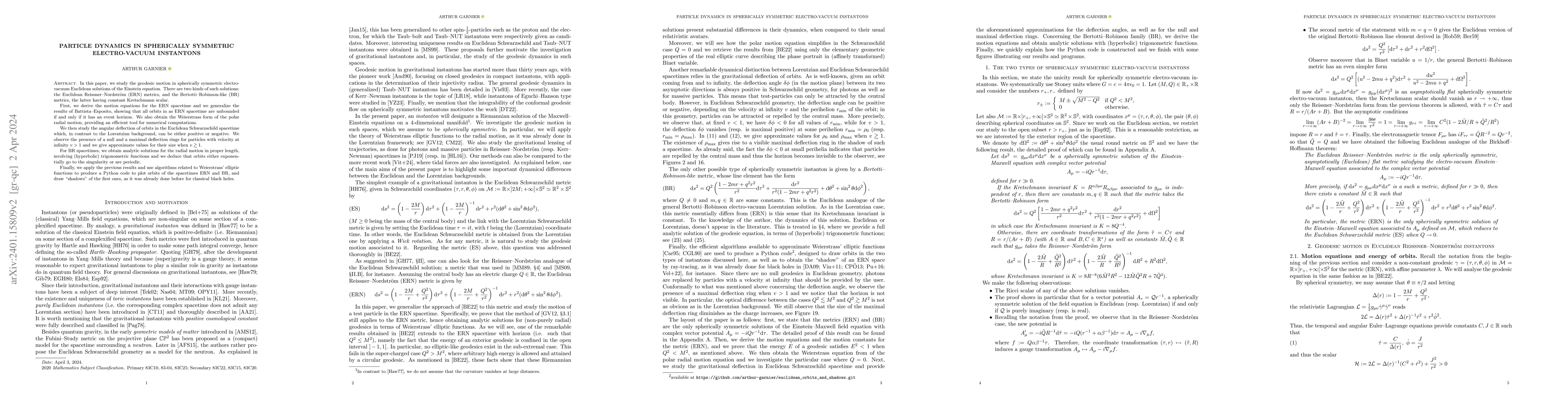 This paper examines geodesic motion in spherically symmetric electro-vacuum Euclidean solutions, deriving equations for the Euclidean Reissner-Nordström (ERN) and Bertotti-Robinson-like (BR) metrics and analyzing their respective orbits, revealing unique features in angular deflection and motion dynamics.