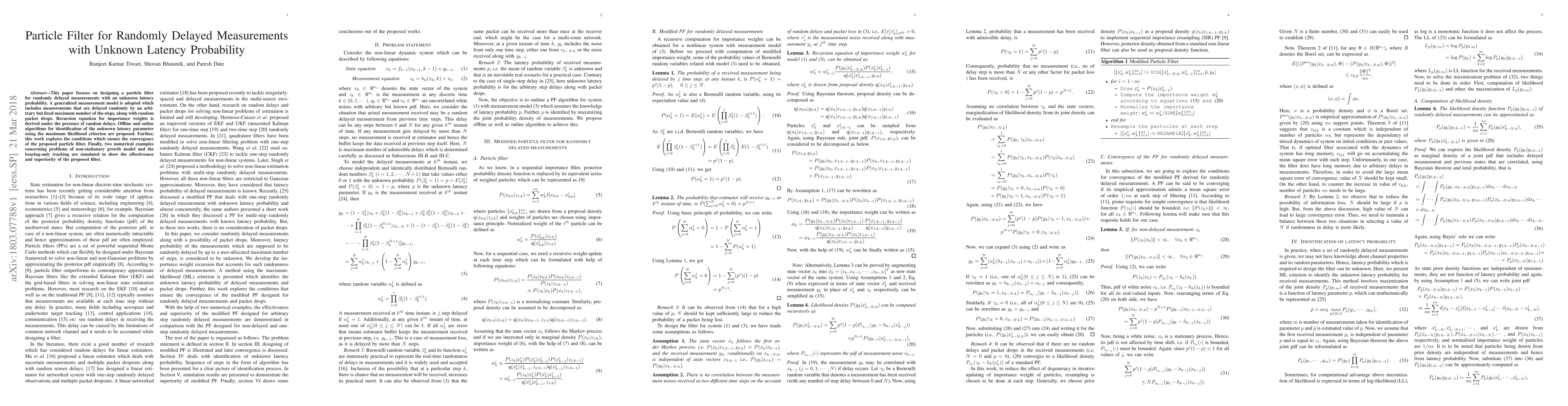 A new particle filter is proposed for handling measurements with random delays and unknown latency probabilities, improving tracking accuracy in uncertain environments.