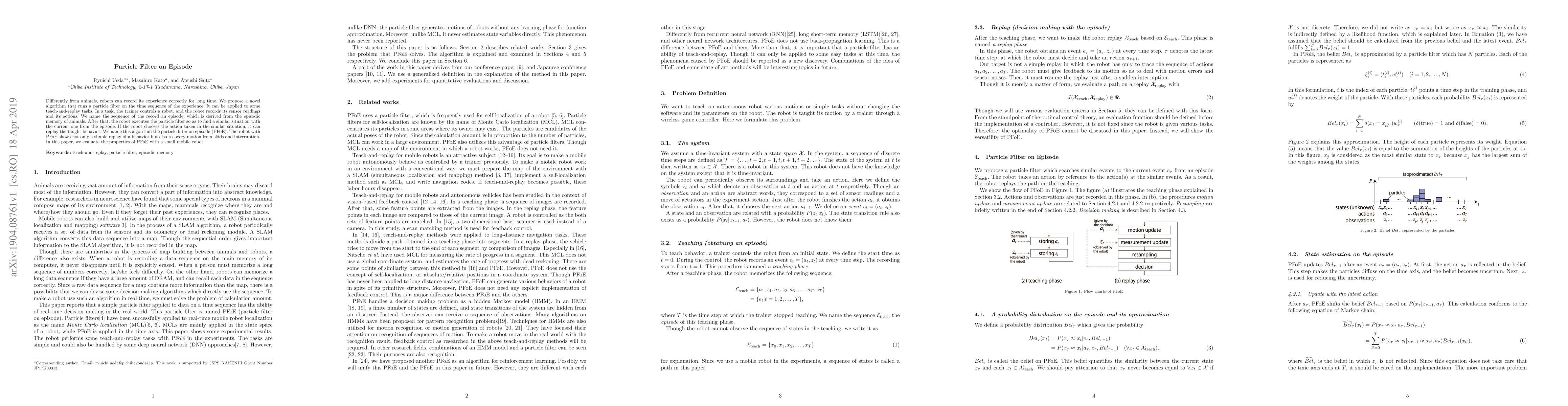 This paper introduces a novel algorithm called the particle filter on episode (PFoE) that enables robots to learn and replay taught behaviors by analyzing recorded sequences of sensor data and actions, termed episodes. The PFoE algorithm allows robots to recover from interruptions and adapt to similar situations, demonstrating improved behavior replay and adaptability.