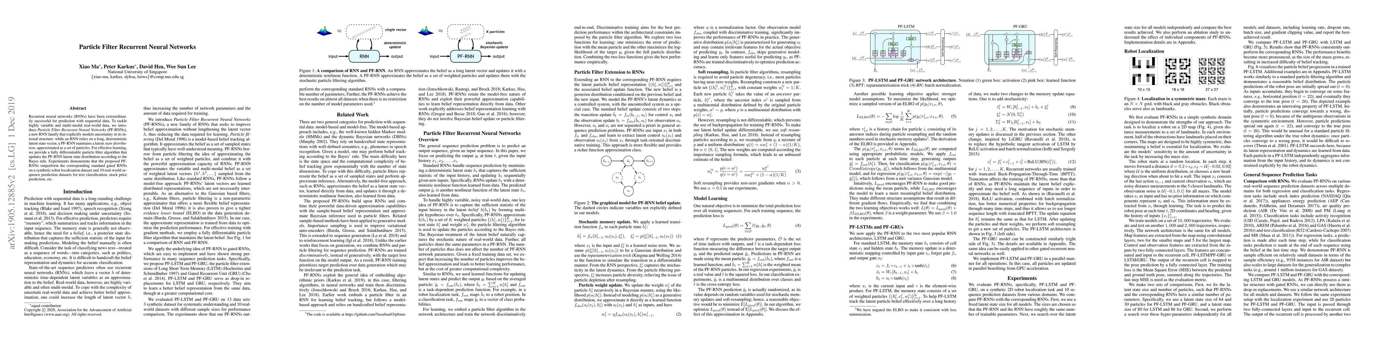 Particle Filter Recurrent Neural Networks (PF-RNNs) introduce a new RNN family that models uncertainty by maintaining a latent state distribution approximated by particles. This approach outperforms standard gated RNNs on various real-world sequence prediction tasks, including text classification and stock price prediction.