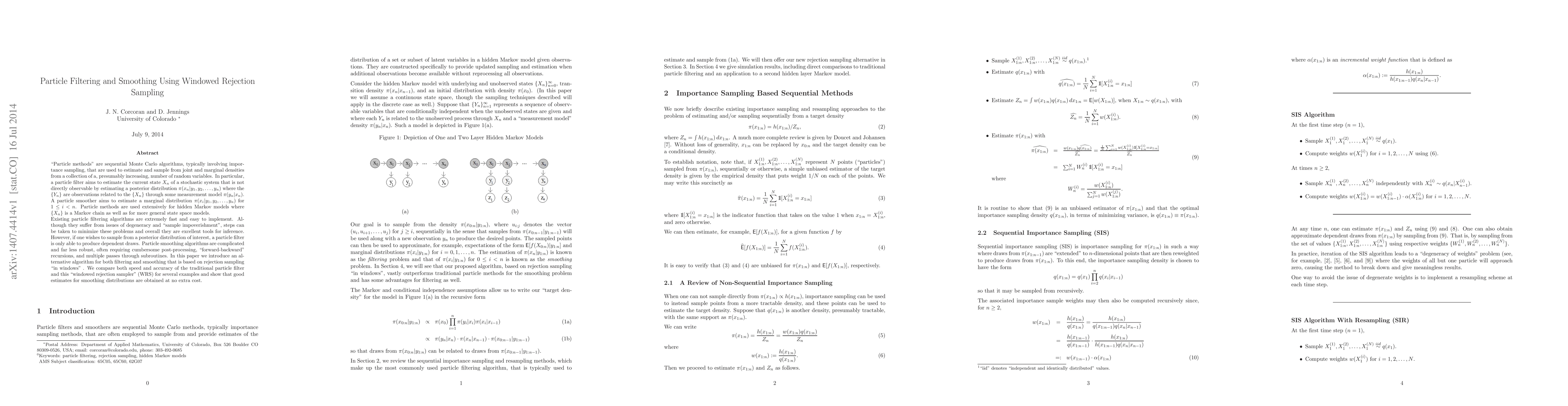 This paper proposes a novel "windowed rejection sampler" (WRS) for particle filtering and smoothing, which aims to address the issues of degeneracy and sample impoverishment in traditional particle filters. The WRS method is shown to provide accurate estimates for smoothing distributions without additional computational cost compared to traditional methods.