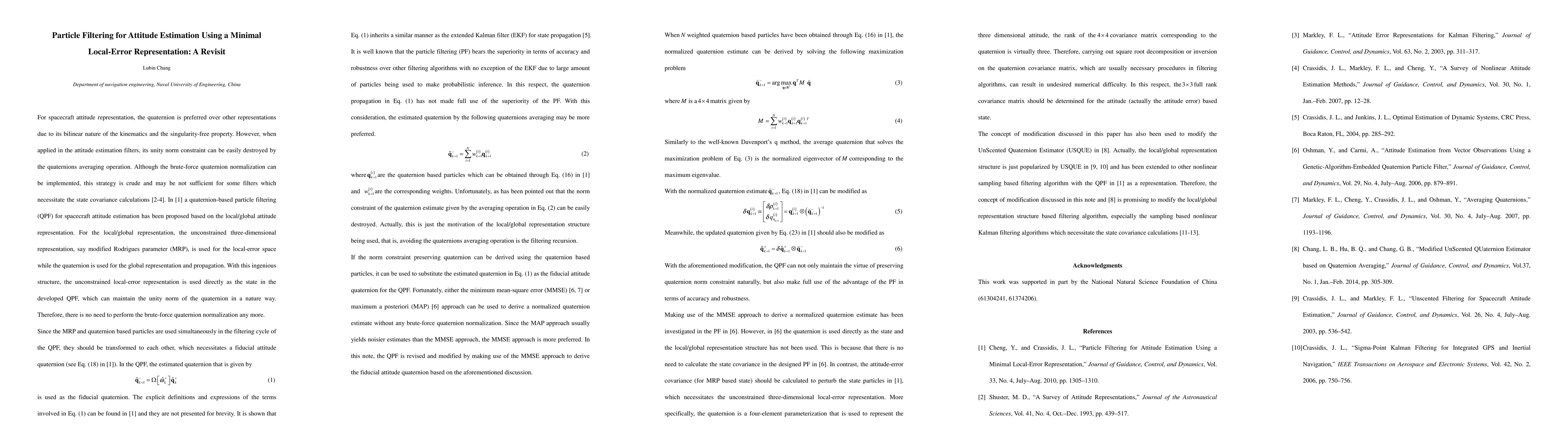 The research revisited the previously published paper on particle filtering for attitude estimation using a minimal local-error representation.