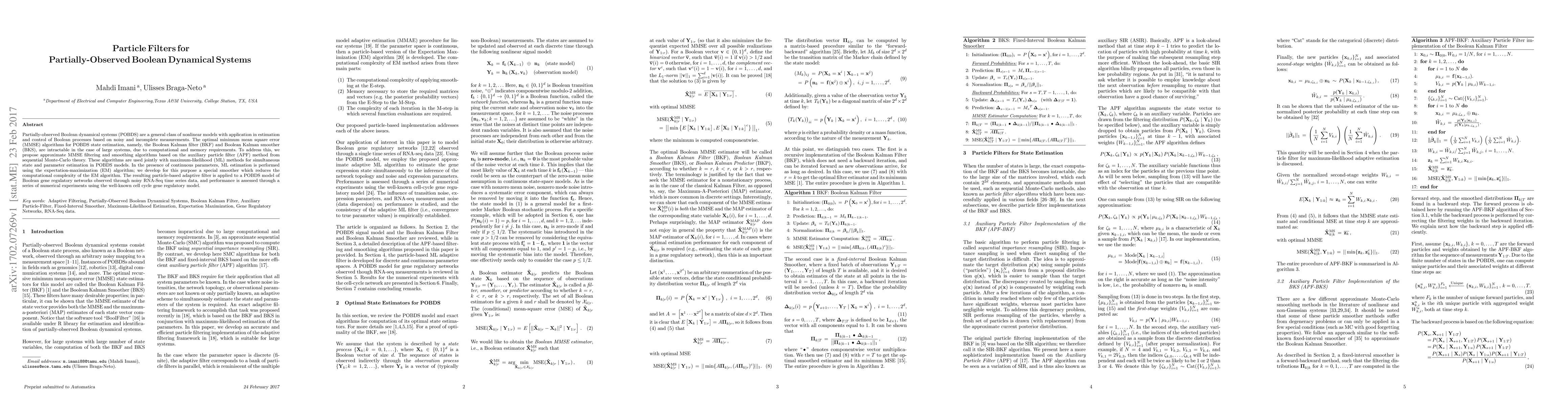 This paper proposes particle filter-based approximate algorithms for state estimation in partially-observed Boolean dynamical systems, addressing the computational challenges of traditional methods. The approach integrates with maximum-likelihood and expectation-maximization techniques for parameter estimation, demonstrating effectiveness in modeling Boolean gene regulatory networks.