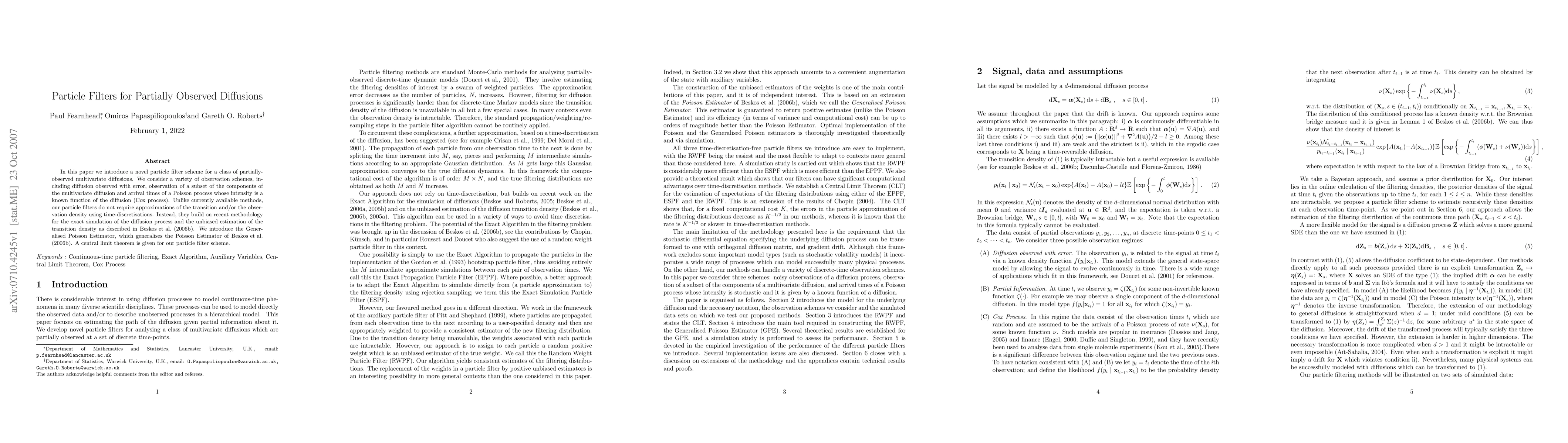This paper proposes a novel particle filter for partially observed multivariate diffusions, avoiding biases from time-discretizations by using exact simulation methods. The introduced Generalised Poisson Estimator enhances the accuracy and efficiency of the filter, supported by a theoretical central limit theorem.