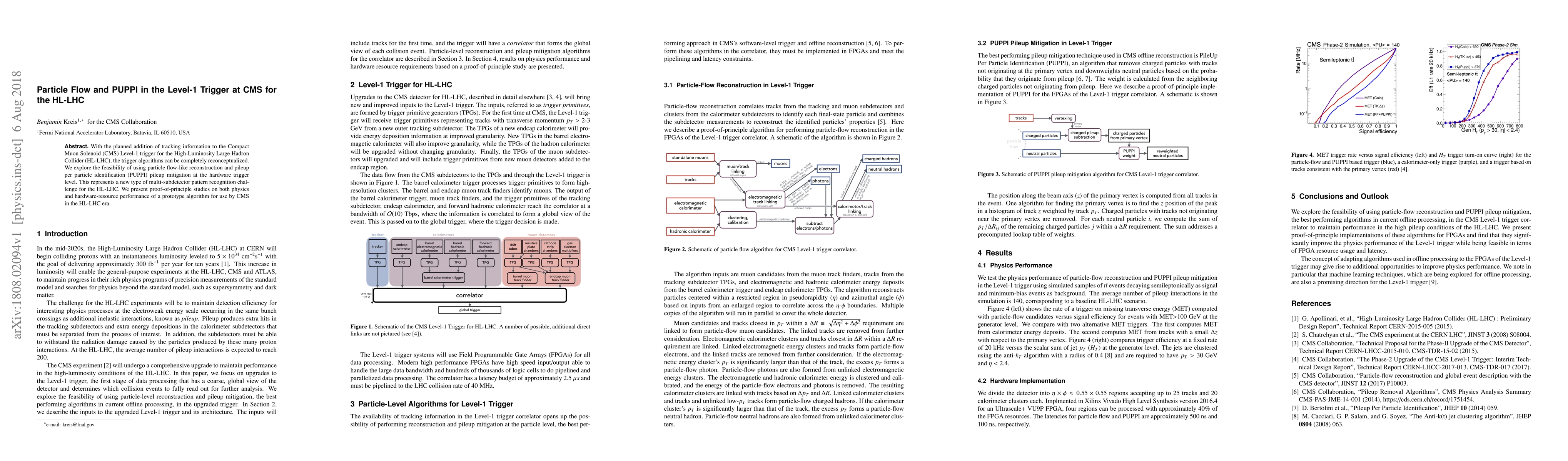 With the planned addition of tracking information to the Compact Muon Solenoid (CMS) Level-1 trigger for the High-Luminosity Large Hadron Collider (HL-LHC), the trigger algorithms can be completely reconceptualized. We explore the feasibility of using particle flow-like reconstruction and pileup per particle identification (PUPPI) pileup mitigation at the hardware trigger level. This represents a new type of multi-subdetector pattern recognition challenge for the HL-LHC. We present proof-of-principle studies on both physics and hardware-resource performance of a prototype algorithm for use by CMS in the HL-LHC era.