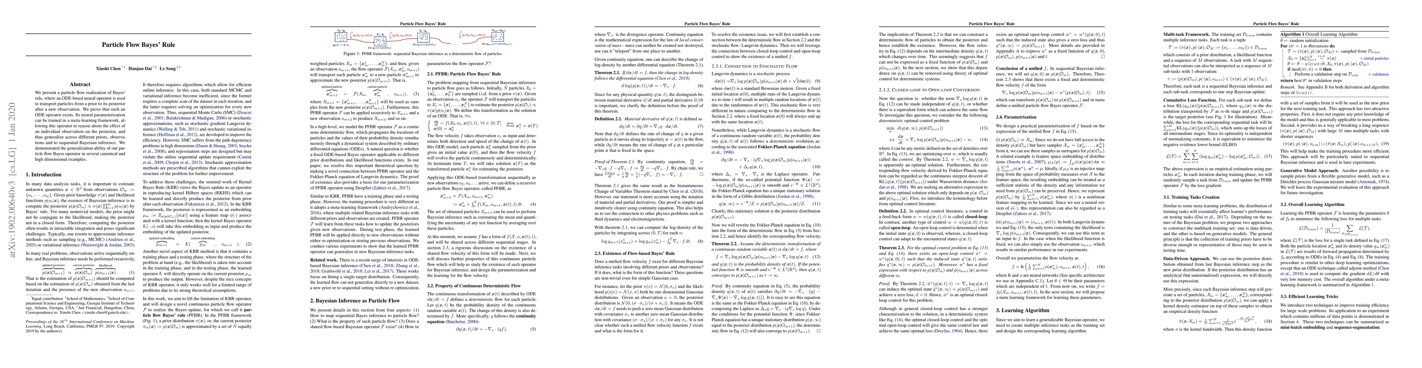 This paper introduces a particle flow method for Bayes' rule using an ODE-based neural operator to update prior distributions with new observations. The neural operator is trained via meta-learning, enabling generalization across different scenarios and sequential Bayesian inference.