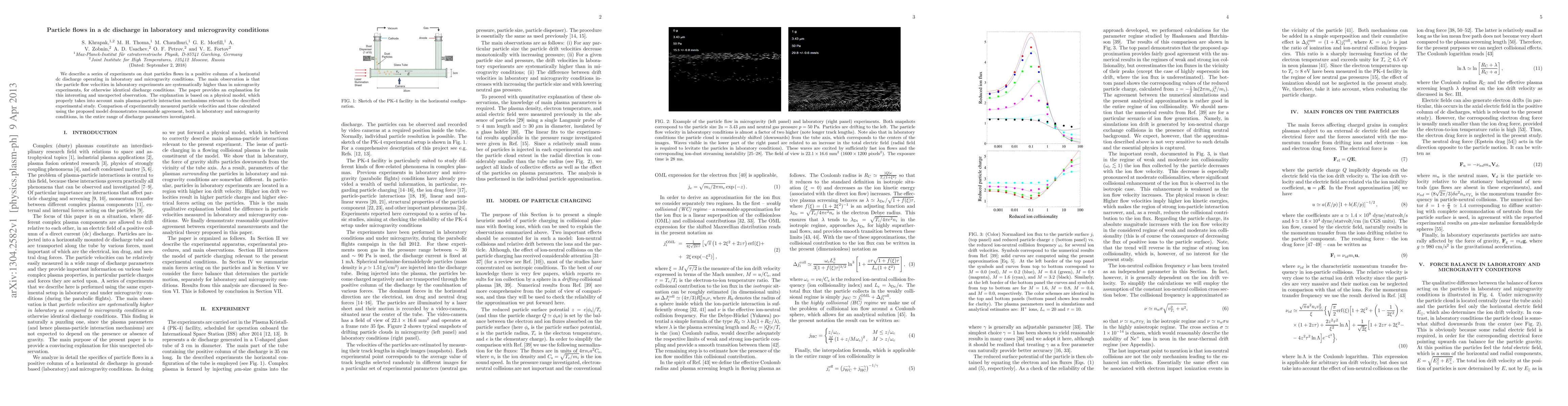 This paper investigates dust particle flows in a dc discharge's positive column under laboratory and microgravity conditions, finding higher particle velocities in lab settings. The authors propose a physical model explaining the discrepancy, which aligns well with measured and calculated particle velocities across various discharge parameters.