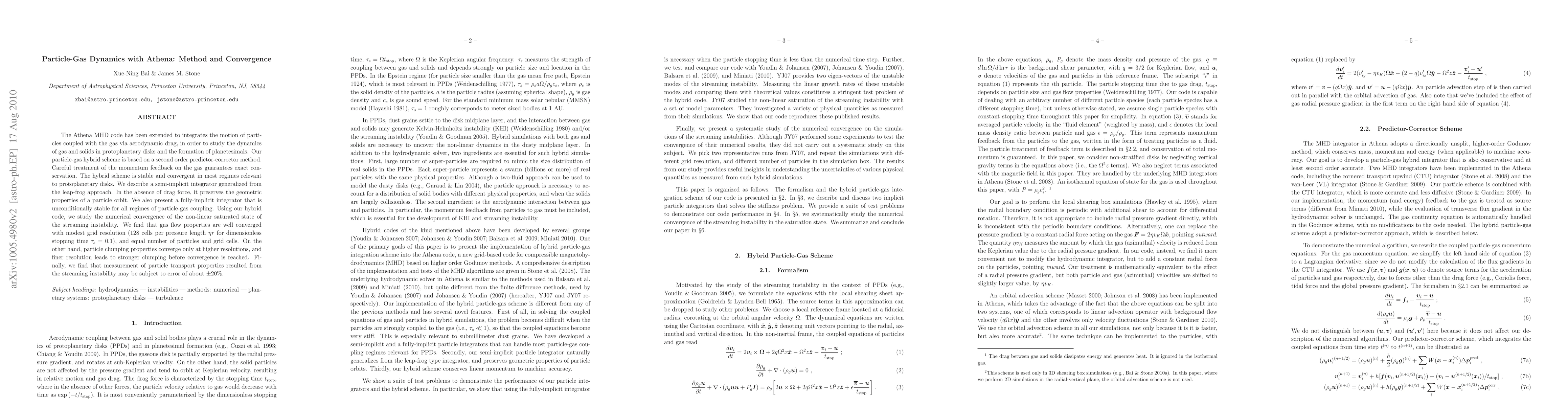 The Athena MHD code has been extended to integrates the motion of particles coupled with the gas via aerodynamic drag, in order to study the dynamics of gas and solids in protoplanetary disks and the formation of planetesimals. Our particle-gas hybrid scheme is based on a second order predictor-corrector method. Careful treatment of the momentum feedback on the gas guarantees exact conservation. The hybrid scheme is stable and convergent in most regimes relevant to protoplanetary disks. We describe a semi-implicit integrator generalized from the leap-frog approach. In the absence of drag force, it preserves the geometric properties of a particle orbit. We also present a fully-implicit integrator that is unconditionally stable for all regimes of particle-gas coupling. Using our hybrid code, we study the numerical convergence of the non-linear saturated state of the streaming instability. We find that gas flow properties are well converged with modest grid resolution (128 cells per pressure length \eta r for dimensionless stopping time tau_s=0.1), and equal number of particles and grid cells. On the other hand, particle clumping properties converge only at higher resolutions, and finer resolution leads to stronger clumping before convergence is reached. Finally, we find that measurement of particle transport properties resulted from the streaming instability may be subject to error of about 20%.