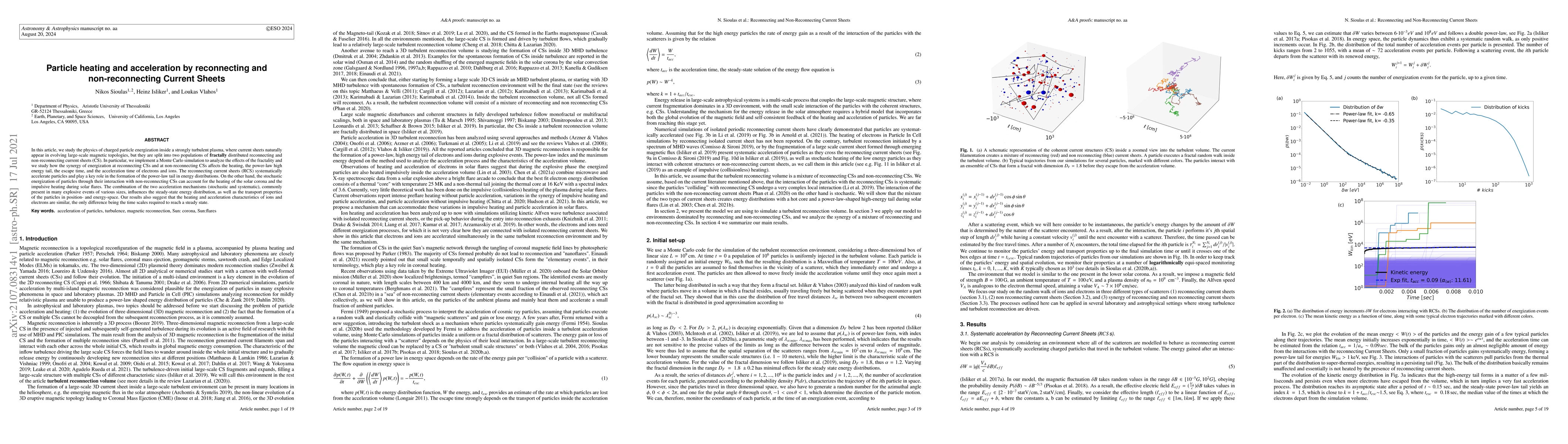 The study combines Monte Carlo simulations with an analysis of fractal distributions of reconnecting and non-reconnecting current sheets, offering new perspectives on particle acceleration and heating in astrophysical plasmas.