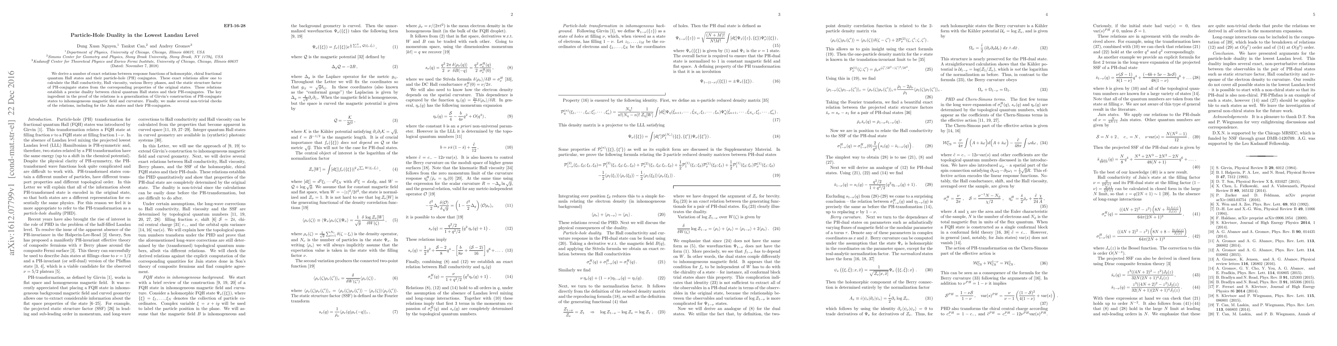 We derive a number of exact relations between response functions of holomorphic, chiral fractional quantum Hall states and their particle-hole (PH) conjugates. These exact relations allow one to calculate the Hall conductivity, Hall viscosity, various Berry phases, and the static structure factor of PH-conjugate states from the corresponding properties of the original states. These relations establish a precise duality between chiral quantum Hall states and their PH-conjugates. The key ingredient in the proof of the relations is a generalization of Girvin's construction of PH-conjugate states to inhomogeneous magnetic field and curvature. Finally, we make several non-trivial checks of the relations, including for the Jain states and their PH-conjugates.