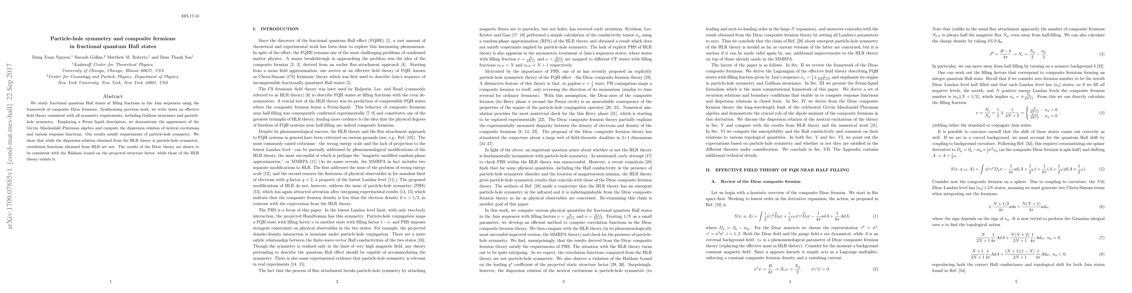 This paper develops an effective field theory for fractional quantum Hall states using composite Dirac fermions, demonstrating particle-hole symmetry and the Girvin-MacDonald-Platzman algebra. It finds that while the HLR theory's dispersion relation is symmetric, its correlation functions are not, and it violates the Haldane bound on the projected structure factor.