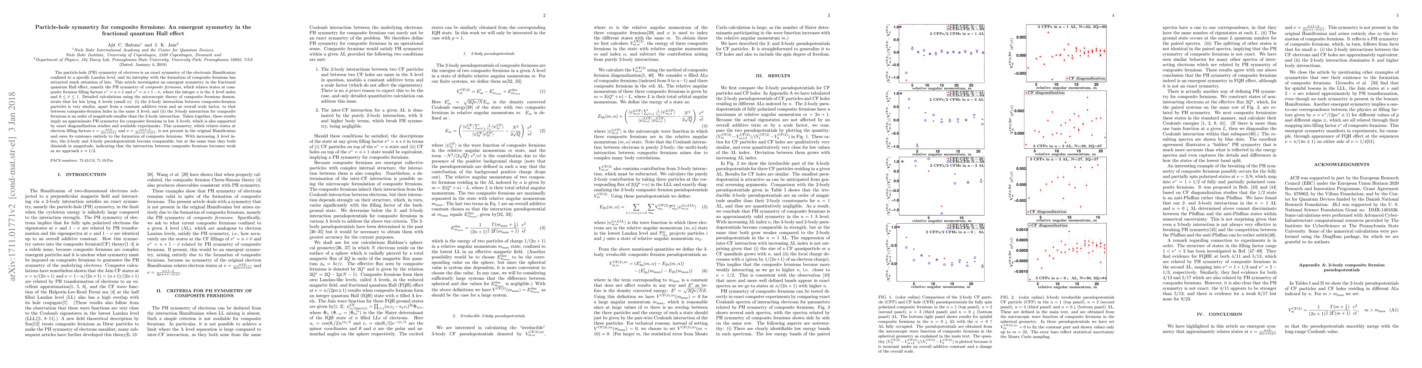 This paper explores the emergent particle-hole symmetry in composite fermions within the fractional quantum Hall effect, revealing an approximate symmetry for low Landau levels that is not present in the original electron Hamiltonian. This symmetry arises due to the interactions between composite fermions, which are significantly weaker as the filling factor approaches ν=1/2.