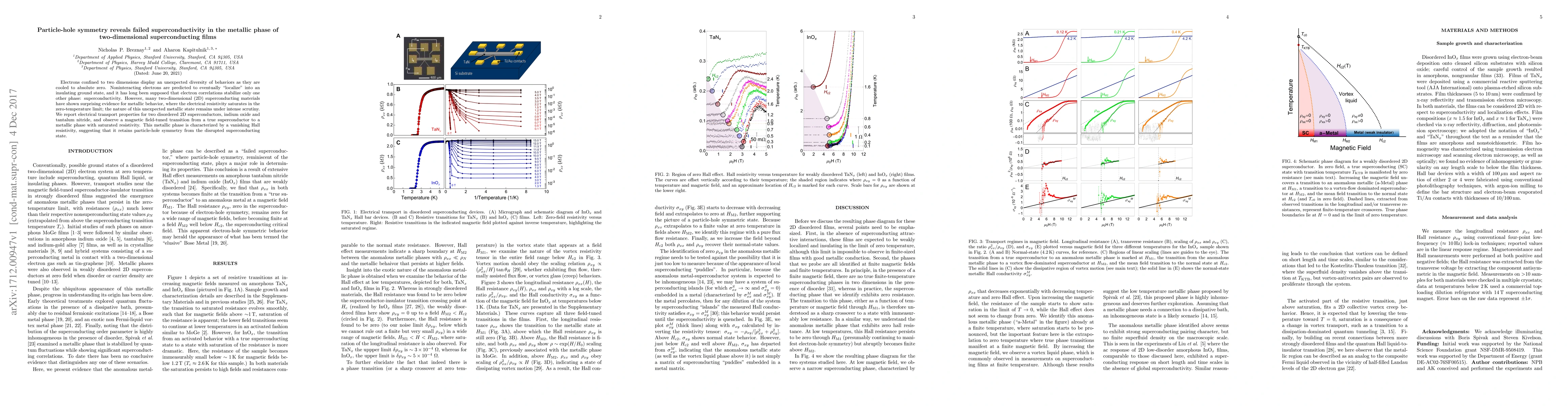 This paper investigates the electrical transport in two-dimensional superconducting films, revealing a transition from superconductivity to a metallic phase with saturated resistivity. The metallic state retains particle-hole symmetry, indicating a failure of conventional superconductivity despite the metallic behavior.