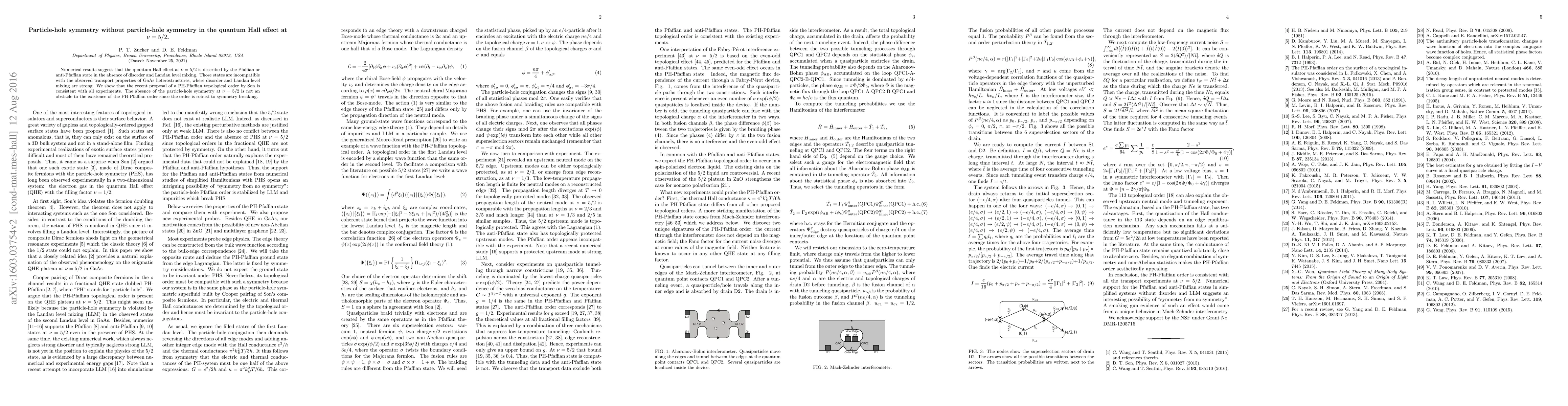 Numerical results suggest that the quantum Hall effect at {\nu} = 5/2 is described by the Pfaffian or anti-Pfaffian state in the absence of disorder and Landau level mixing. Those states are incompatible with the observed transport properties of GaAs heterostructures, where disorder and Landau level mixing are strong. We show that the recent proposal of a PH-Pfaffian topological order by Son is consistent with all experiments. The absence of the particle-hole symmetry at {\nu} = 5/2 is not an obstacle to the existence of the PH-Pfaffian order since the order is robust to symmetry breaking.