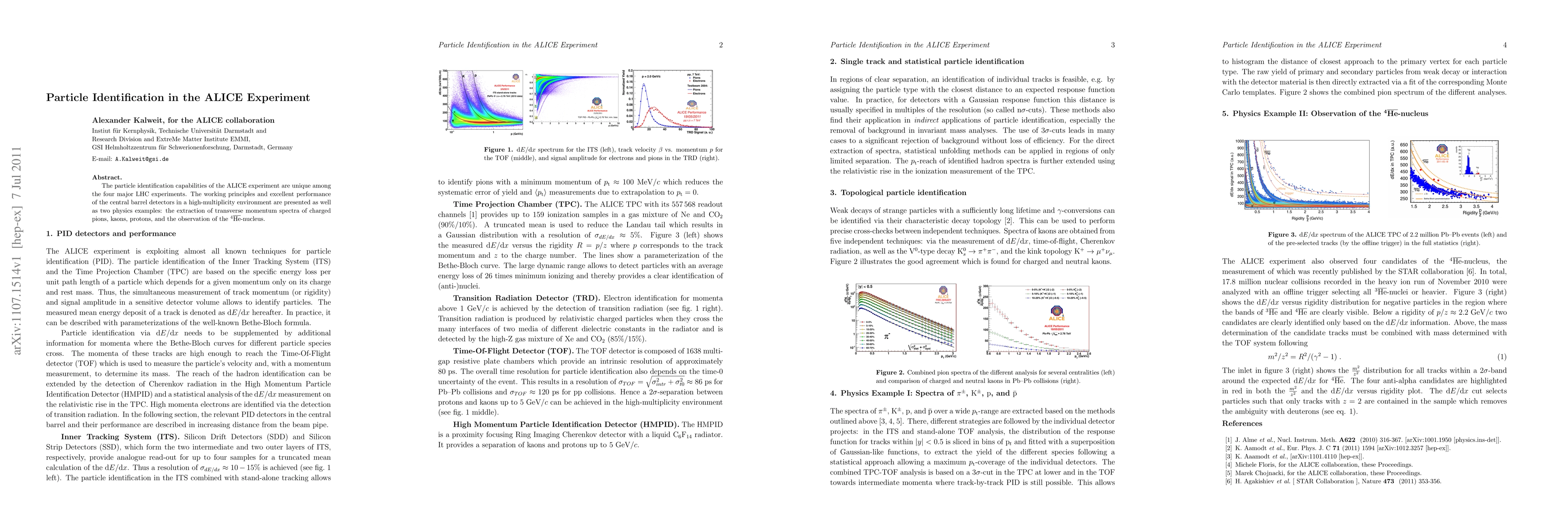Summary: This paper details the advanced particle identification techniques of the ALICE experiment, highlighting its central barrel detectors' performance in high-multiplicity environments, and provides examples of its applications, including the analysis of transverse momentum spectra and the detection of anti-4He-nucleus.