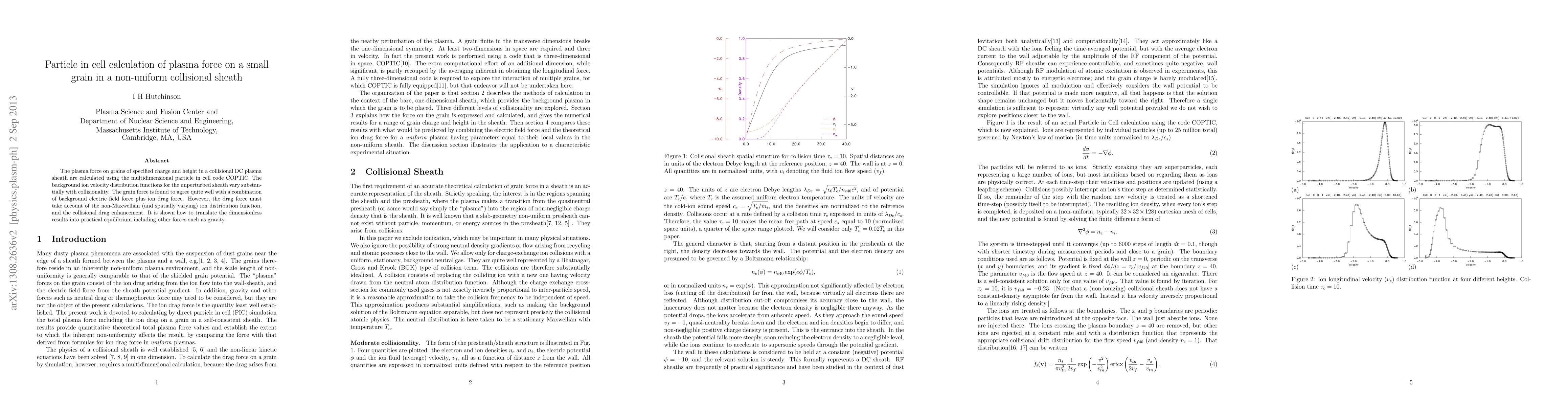 The plasma force on grains of specified charge and height in a collisional DC plasma sheath are calculated using the multidimensional particle in cell code COPTIC. The background ion velocity distribution functions for the unperturbed sheath vary substantially with collisionality. The grain force is found to agree quite well with a combination of background electric field force plus ion drag force. However, the drag force must take account of the non-Maxwellian (and spatially varying) ion distribution function, and the collisional drag enhancement. It is shown how to translate the dimensionless results into practical equilibrium including other forces such as gravity.