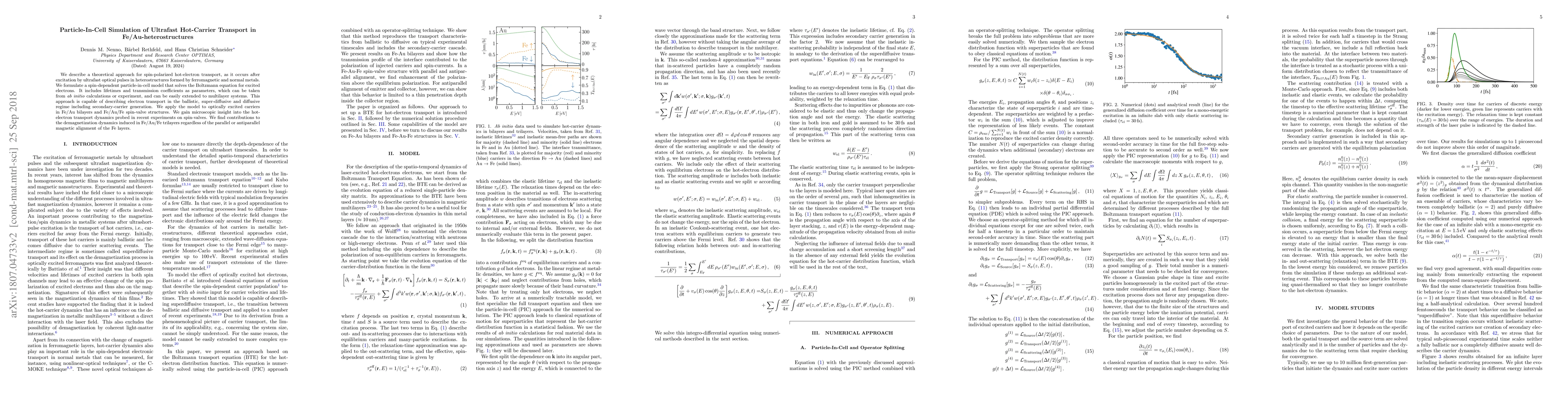 This paper presents a spin-dependent particle-in-cell model to simulate ultrafast hot-carrier transport in Fe/Au heterostructures, providing insights into the dynamics of demagnetization in Fe/Au/Fe spin-valve structures. The model accounts for various transport regimes and secondary-carrier generation.