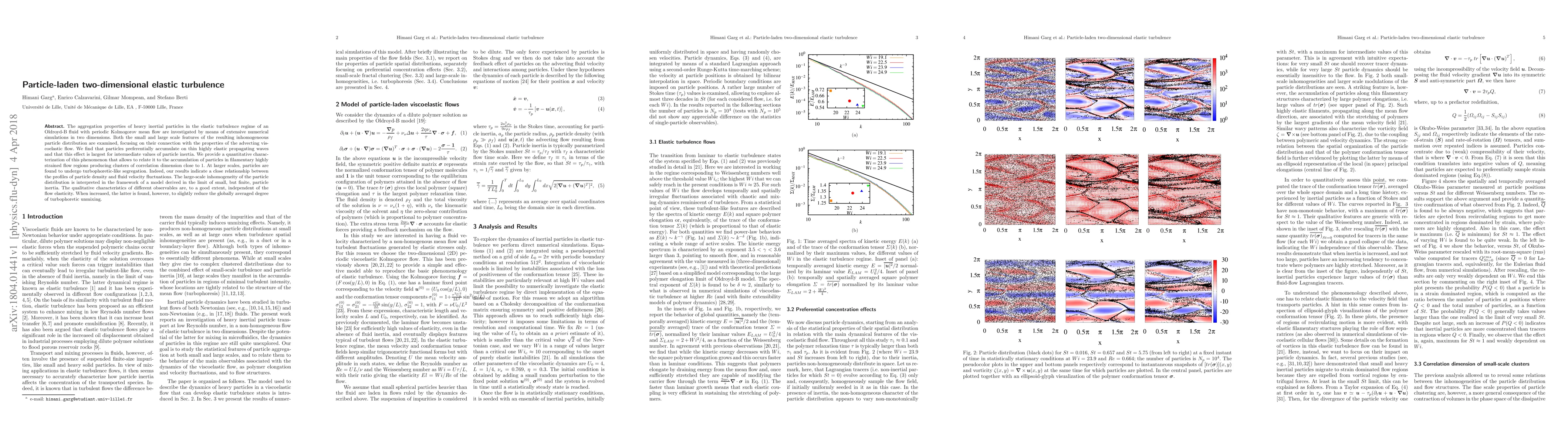 The aggregation properties of heavy inertial particles in the elastic turbulence regime of an Oldroyd-B fluid with periodic Kolmogorov mean flow are investigated by means of extensive numerical simulations in two dimensions. Both the small and large scale features of the resulting inhomogeneous particle distribution are examined, focusing on their connection with the properties of the advecting viscoelastic flow. We find that particles preferentially accumulate on thin highly elastic propagating waves and that this effect is largest for intermediate values of particle inertia. We provide a quantitative characterization of this phenomenon that allows to relate it to the accumulation of particles in filamentary highly strained flow regions producing clusters of correlation dimension close to 1. At larger scales, particles are found to undergo turbophoretic-like segregation. Indeed, our results indicate a close relationship between the profiles of particle density and fluid velocity fluctuations. The large-scale inhomogeneity of the particle distribution is interpreted in the framework of a model derived in the limit of small, but finite, particle inertia. The qualitative characteristics of different observables are, to a good extent, independent of the flow elasticity. When increased, the latter is found, however, to slightly reduce the globally averaged degree of turbophoretic unmixing.