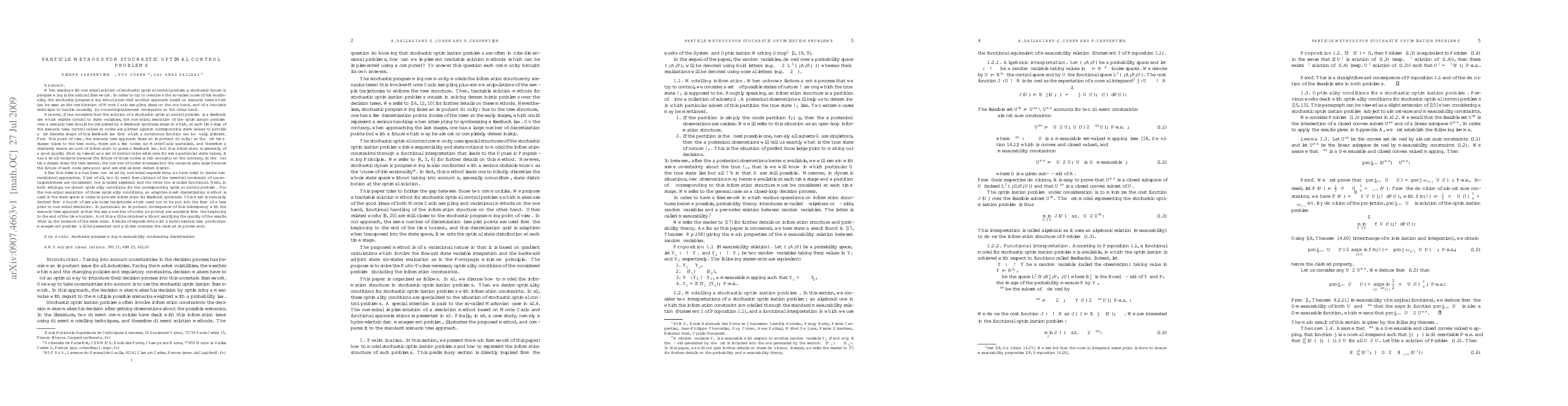 To tackle the difficulties faced by both stochastic dynamic programming and scenario tree methods, we present some variational approach for numerical solution of stochastic optimal control problems. We consider two different interpretations of the control problem, an algebraic and a functional one from which we derive optimality conditions. An adaptative mesh discretization method will be used to propose a tractable solution algorithm. An application to a hydro-electric dam production management problem will be presented.