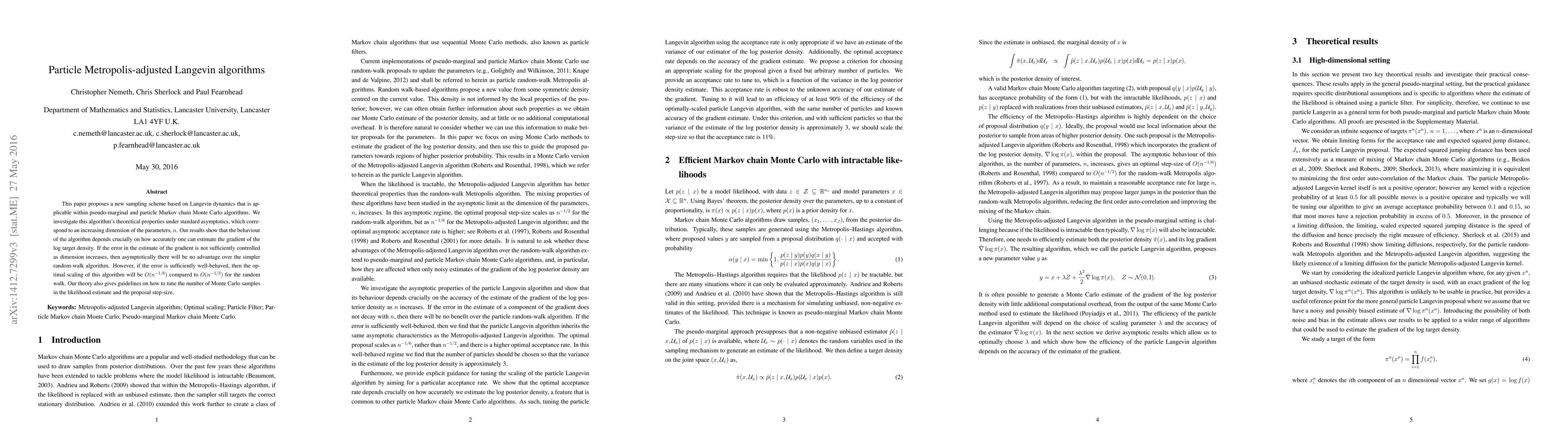 A new particle-based algorithm for Monte Carlo simulations offers improved efficiency with optimal scaling of $O(n^{-1/6})$, but requires accurate gradient estimation to achieve this advantage.