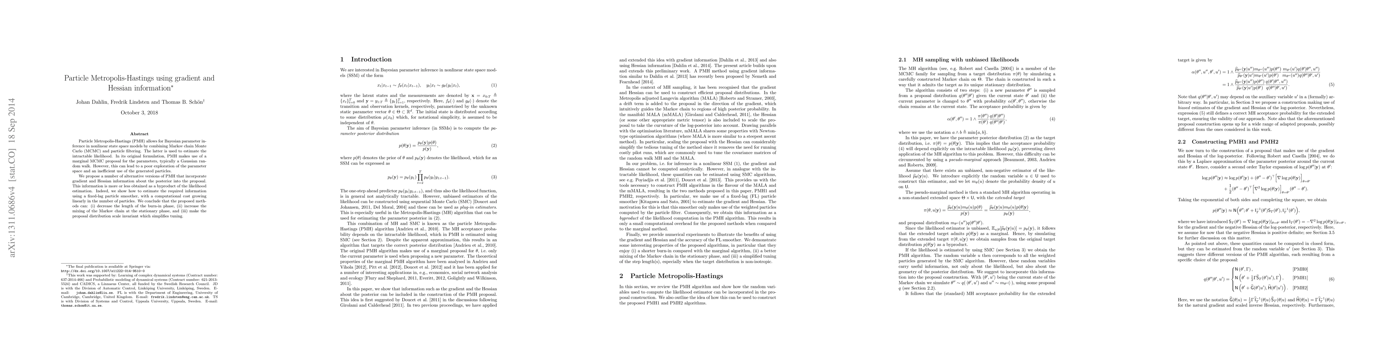 Particle Metropolis-Hastings (PMH) allows for Bayesian parameter inference in nonlinear state space models by combining Markov chain Monte Carlo (MCMC) and particle filtering. The latter is used to estimate the intractable likelihood. In its original formulation, PMH makes use of a marginal MCMC proposal for the parameters, typically a Gaussian random walk. However, this can lead to a poor exploration of the parameter space and an inefficient use of the generated particles. We propose a number of alternative versions of PMH that incorporate gradient and Hessian information about the posterior into the proposal. This information is more or less obtained as a byproduct of the likelihood estimation. Indeed, we show how to estimate the required information using a fixed-lag particle smoother, with a computational cost growing linearly in the number of particles. We conclude that the proposed methods can: (i) decrease the length of the burn-in phase, (ii) increase the mixing of the Markov chain at the stationary phase, and (iii) make the proposal distribution scale invariant which simplifies tuning.