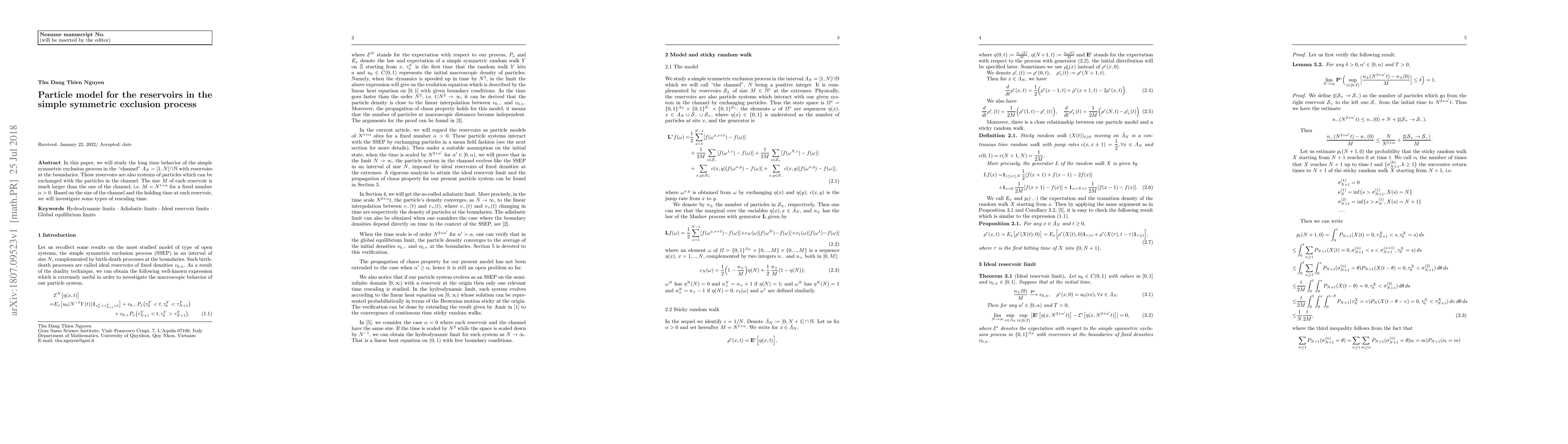 This paper examines the long-term behavior of the simple symmetric exclusion process with large reservoirs at the boundaries, analyzing different types of time rescaling based on the size of the channel and the exchange time between the channel and the reservoirs.